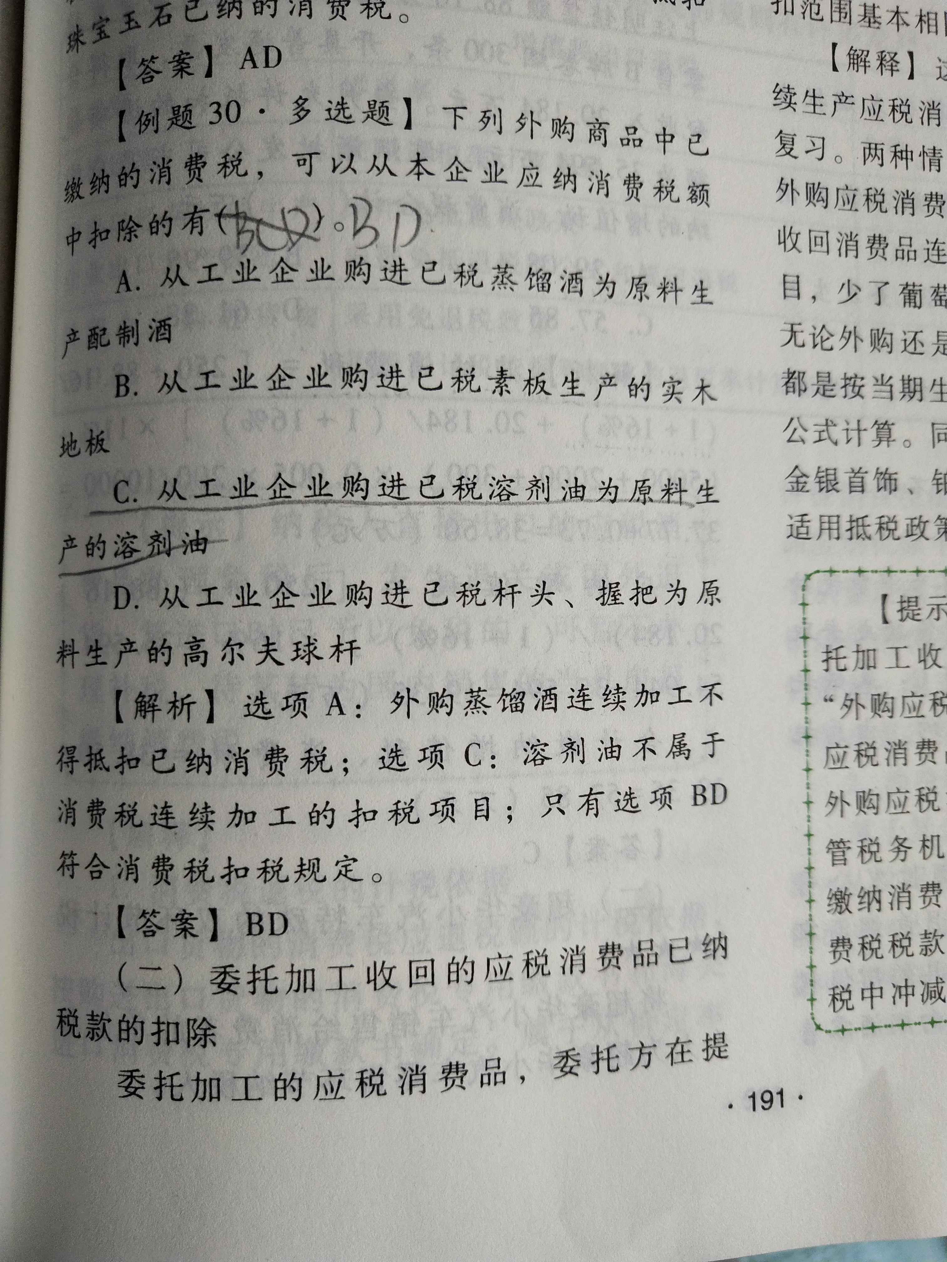 老师您好,请问为什么企业委托加工应税消费品收回后直接对外销...