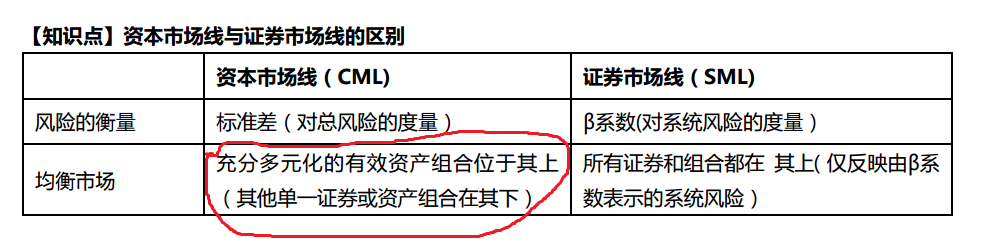 只有充分组合的投资,才能落到资本市场线上。如果组合不充分,或是单项资产投资,是落不到这根线上的。但充分组合投资,不是仅指切点处的投资组合?在资本市场线上,除切点以外的点,也是充分组合?