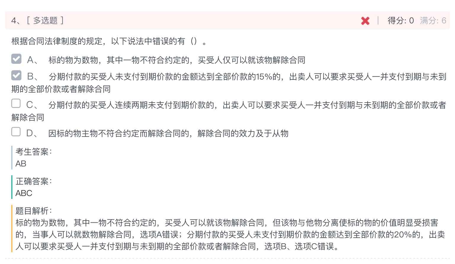 分期付款的买受人只有连续两期未支付价款达到总价款的20%时,出卖人才可以要求支付全部价款或解除合同的。C项没有说两期未支付价款合计超过总价款的20%。