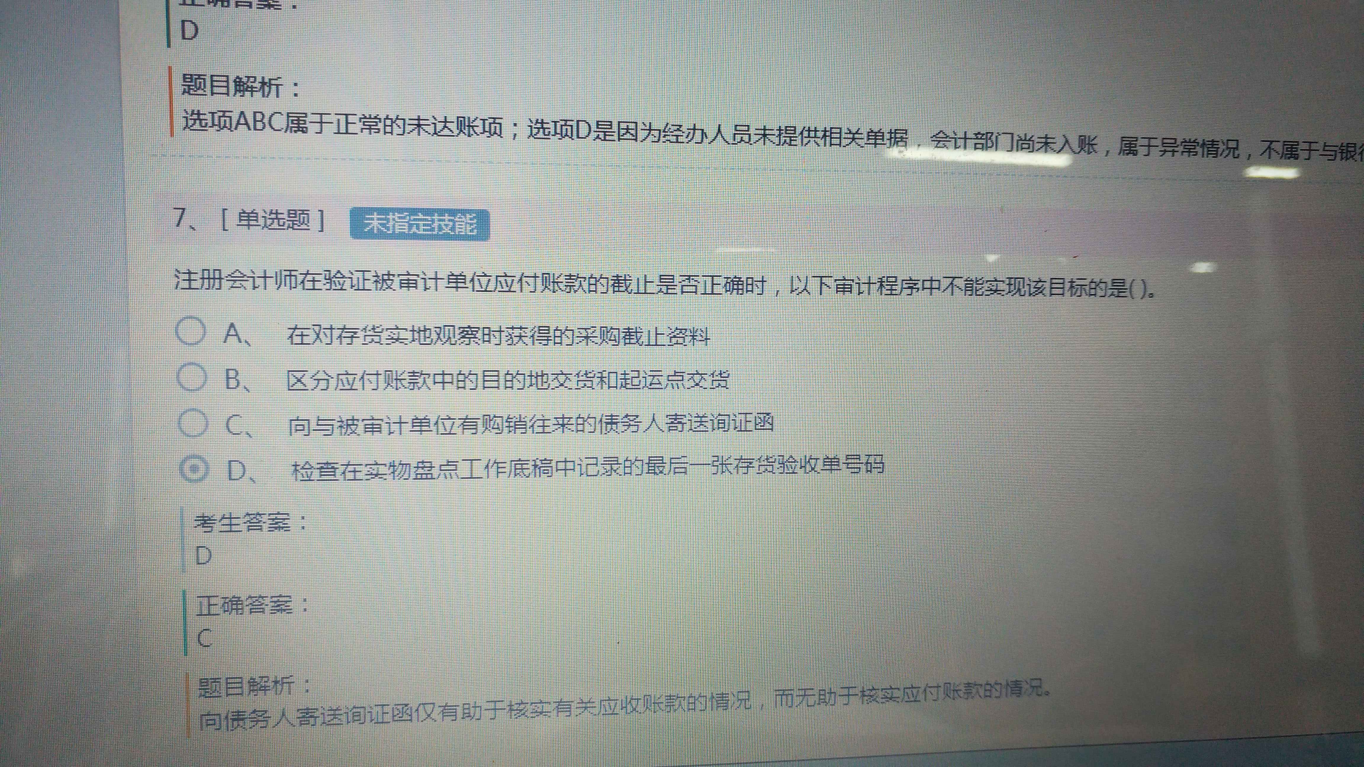 我知道C不对了,但D选项也对问题。假如该公司没有对验收单连续编号,应当记录最后几笔,而不是最后一笔吧