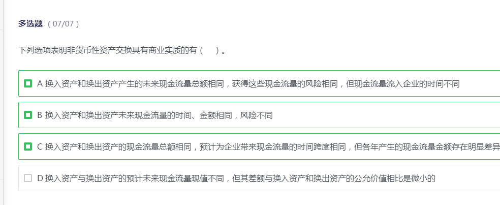 在AC选项的条件下,都可以使换出资产和换入资产预计未来现金流量差额较大,所以他们都表明具有商业实质。