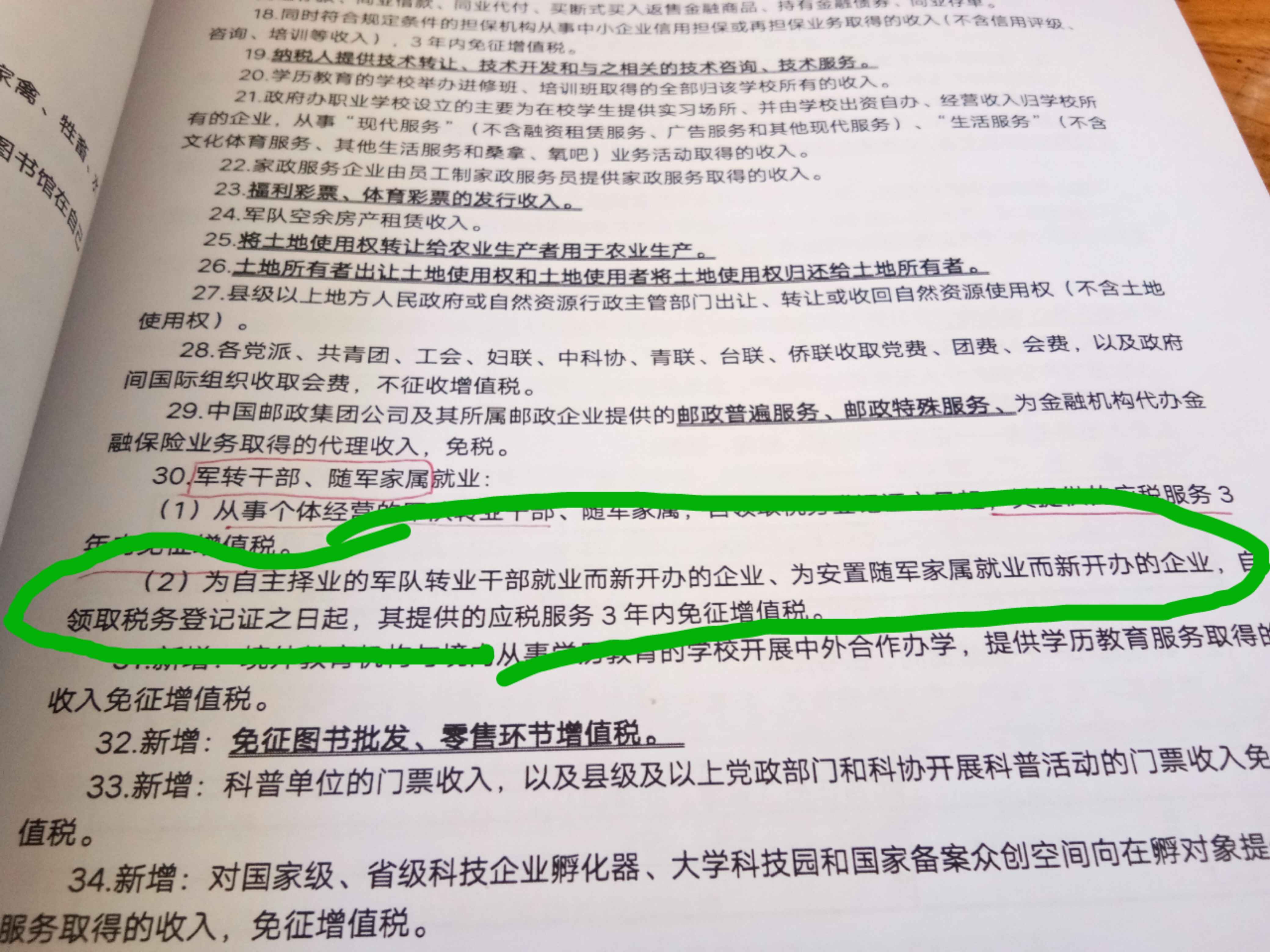这句话就是说军人退役之后转业,自己想创业,国家为了鼓励他们创业所以给予优惠政策,3年免征。