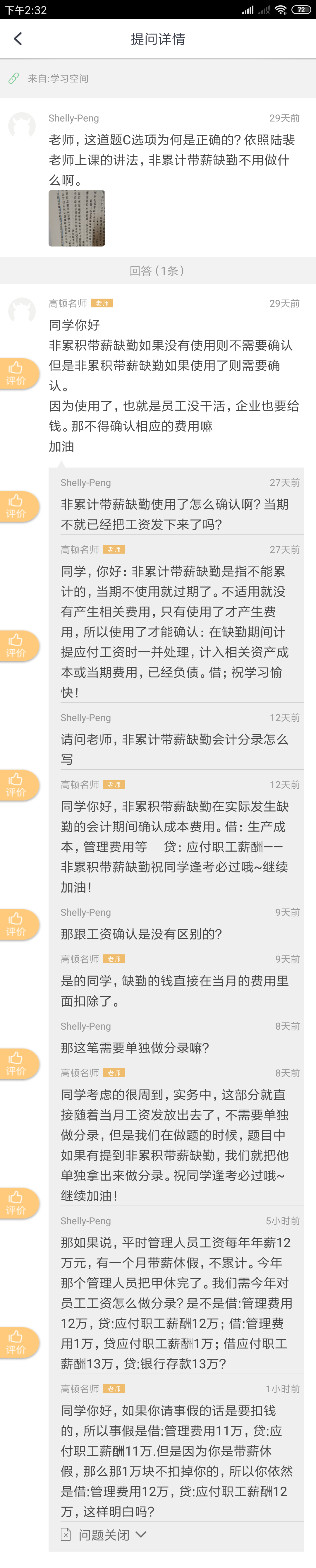 老师 对于非累计带薪缺勤,企业应当在职工实际发生缺勤的会计期...