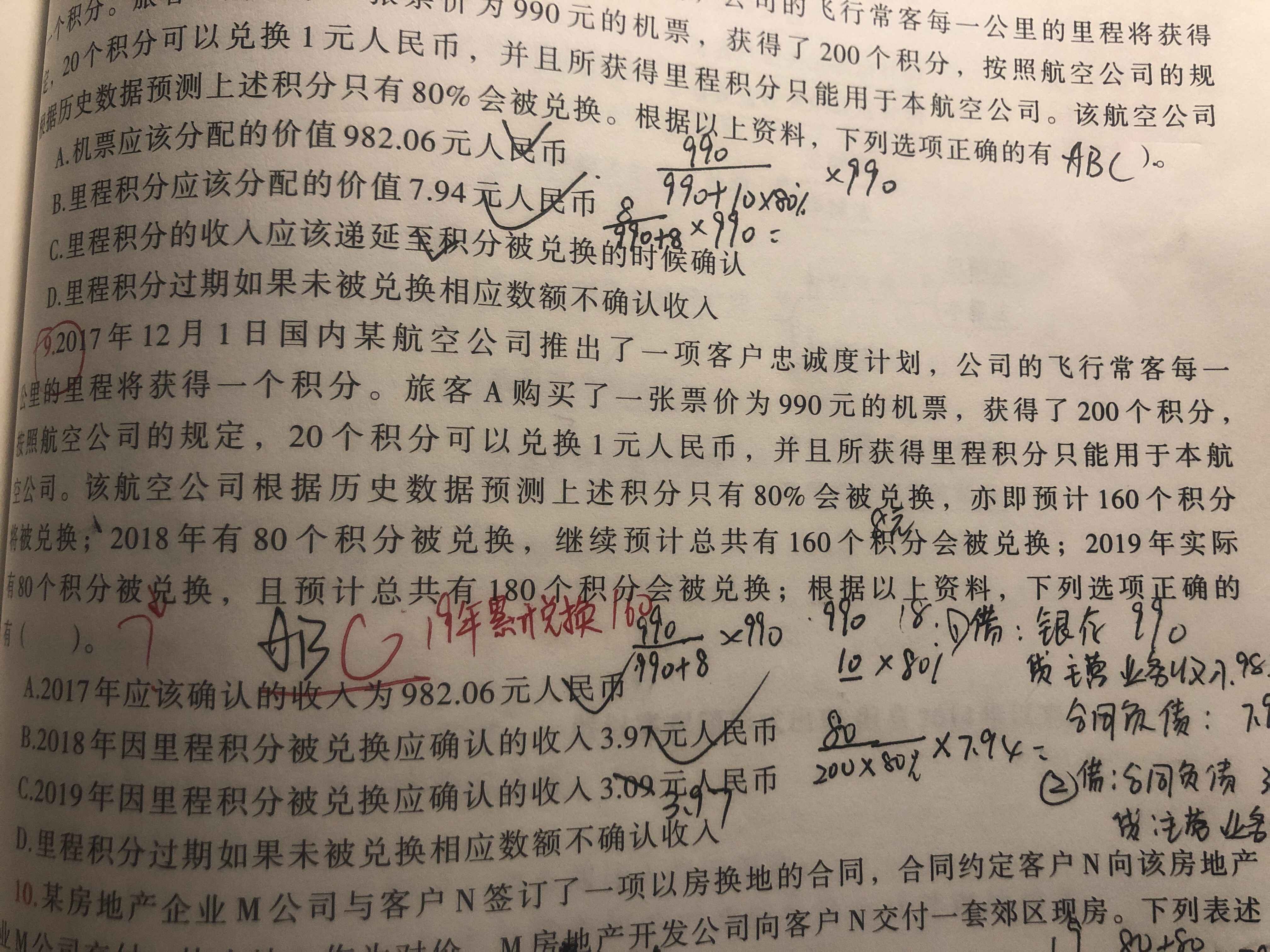 19年实际兑换的积分80包含了18年未兑换积分数额 80(160-80),还剩下新的20积分(180-160),所以19年确认收入=7.94*(8/9)-3.97=3.09.