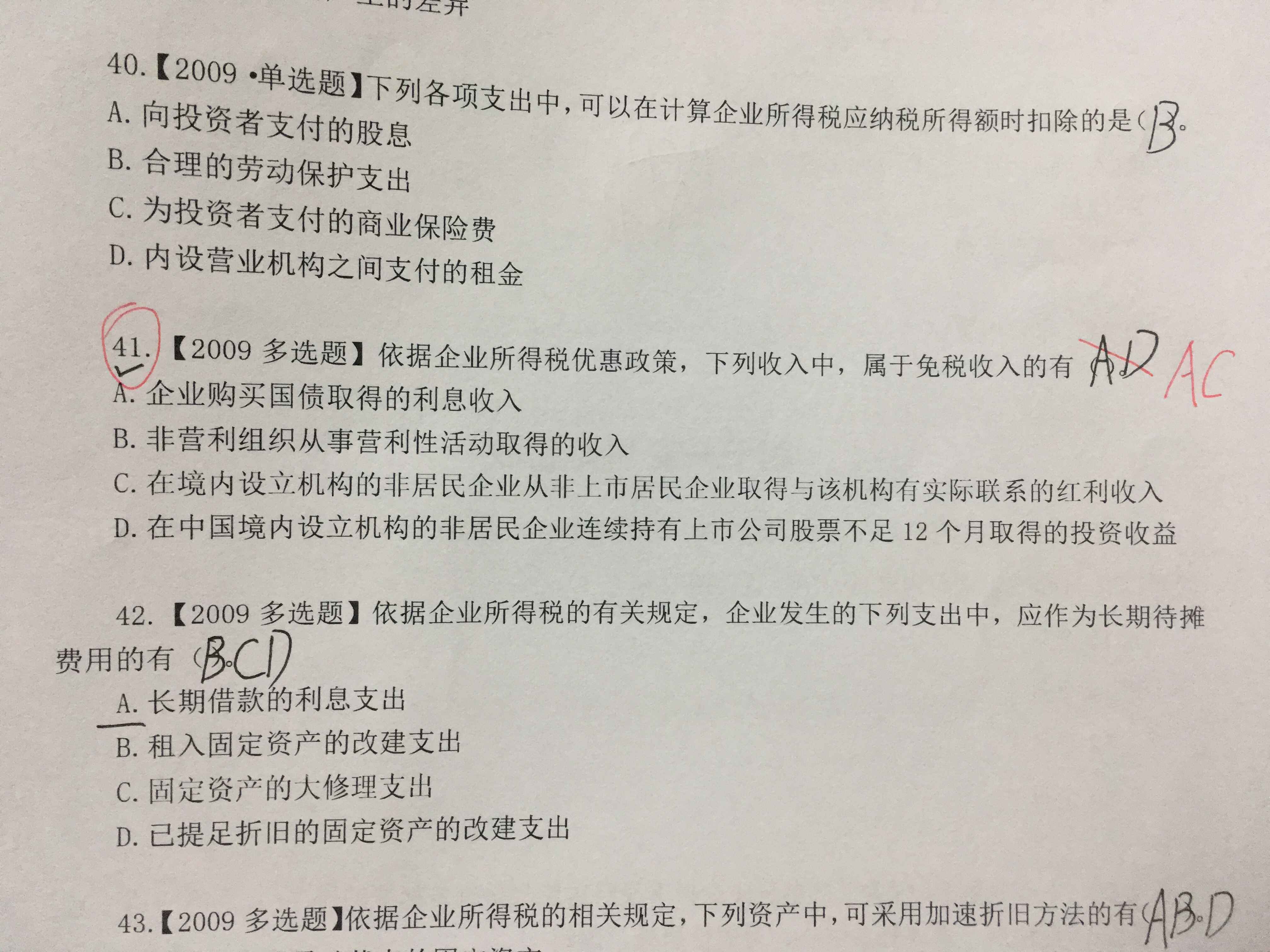 41的CD是不一样的,C是居民企业间的股息红利免税,这个不需要看持有时间的;D是上市流通股也就是股票的股息红利,这个是持有满12个月免税,不足12个月要缴税。