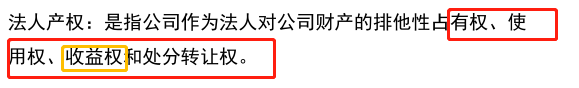 老师,这里都是讲法人产权,为啥图一中提到没有收益权,但图二的法人产权的概念中有收益权,请问,法人产权是否包含收益权呢?