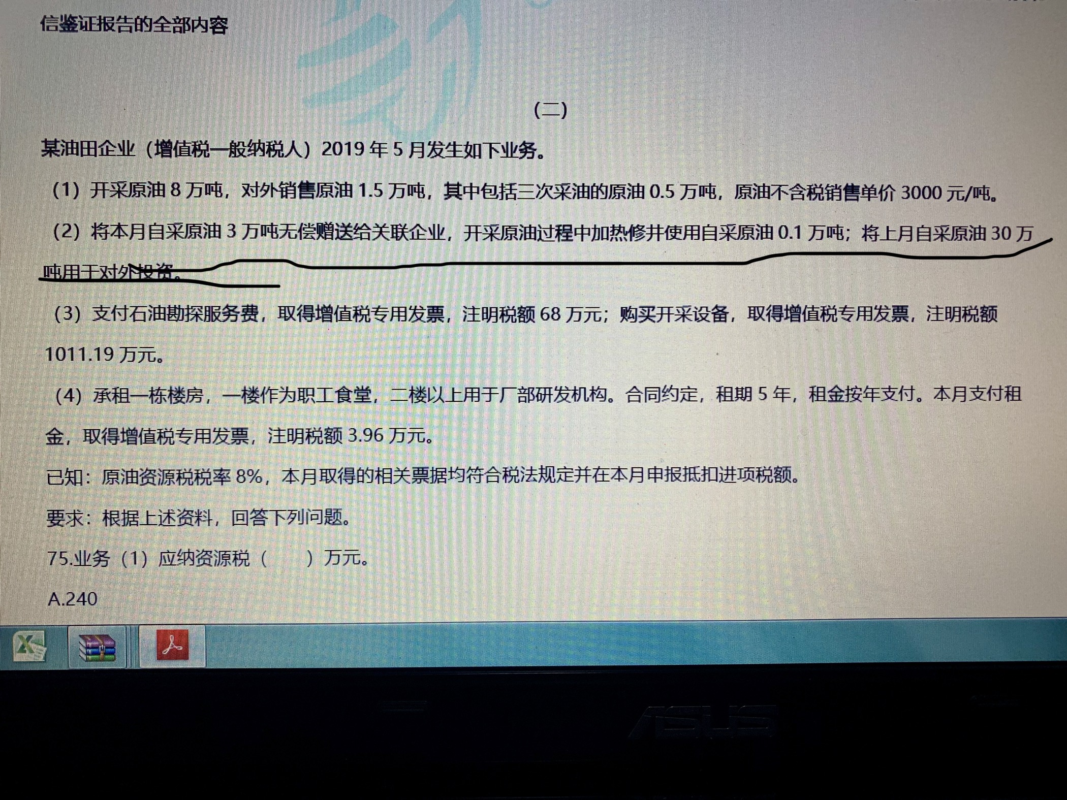 老师这道计算题,资料2计算资源税要考虑价外费用,然后答案里面...