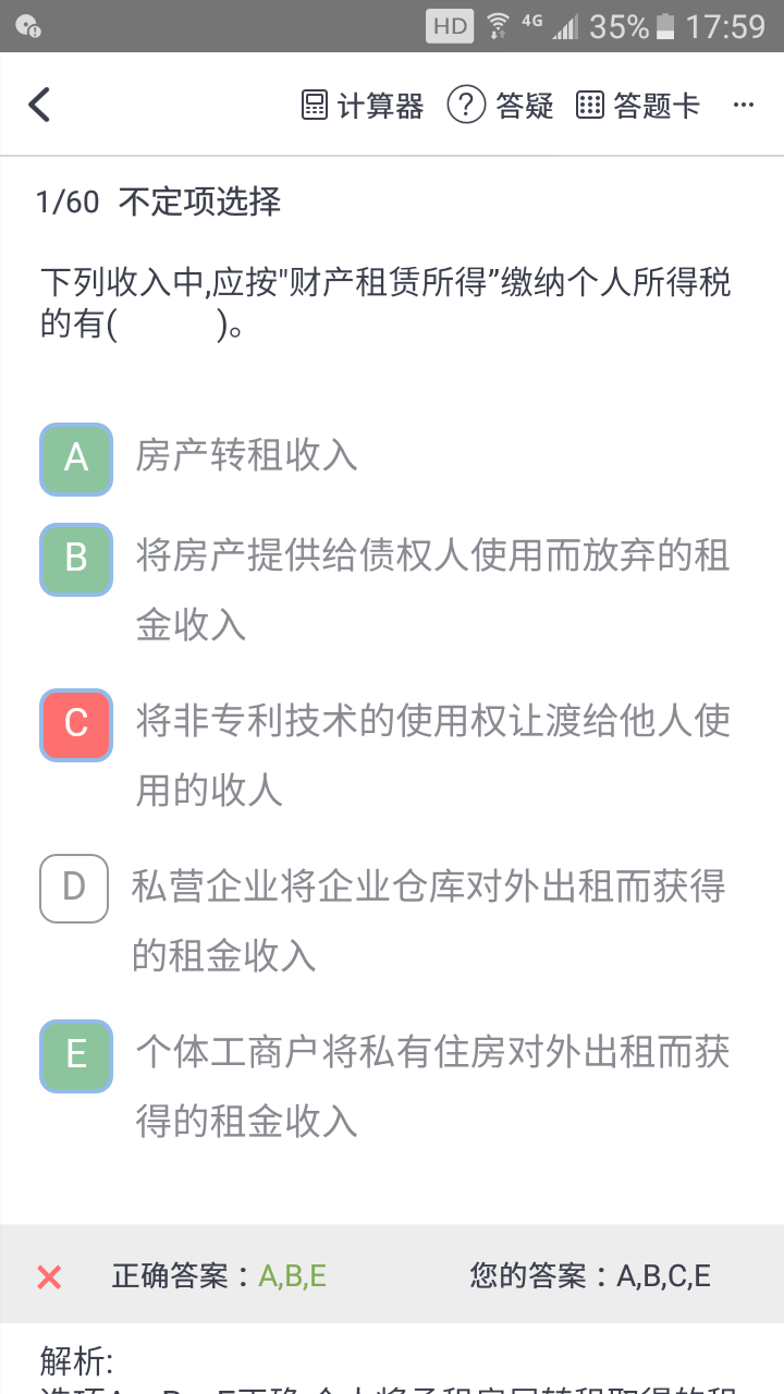 E不是经营所得吗?C为什么错