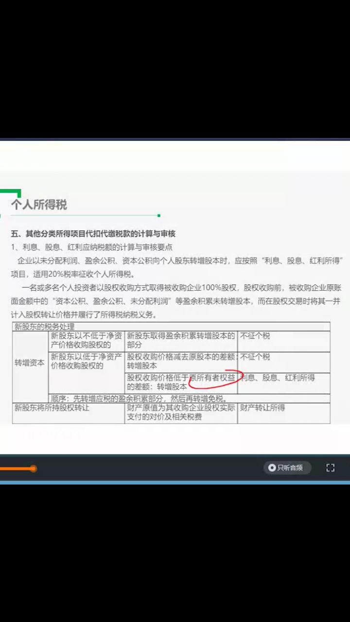 张先生取得股权后,转增资本,按规定,股权收购价格减去原股本的差额部分即(1500-1000=500万元),已经计入股权交易价格,新股东取得盈余积累转增股本的部分,不征收个人所得税;对于股权收购价格低于原所有者权益的差额部分(1500-2000=-500万元)。即盈余积累1000万中有500万元是不征收个税的,剩余500万元需要缴纳个人所得税,A先生应缴个人所得税=500×20%=100(万元)。