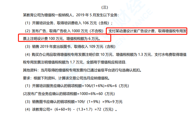 这题支付动漫设计费的增值税额6万元为什么不能做进项抵扣?