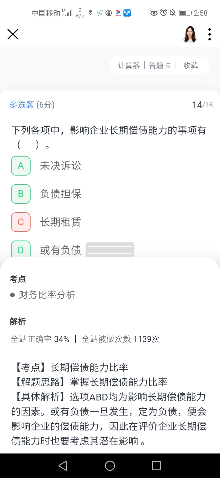 这个题目有问题,是选择C的哦~这里我们反馈技术修改一下呢~给同学造成困扰了深感抱歉啊~