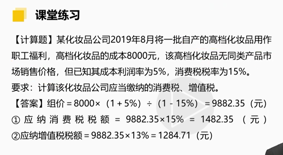 增值税的计税依据里含消费税,为什么这道题不把消费税1482.35元加到9882.35元里计算增值税?