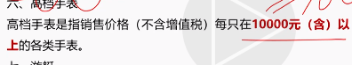 请问老师这里的高档手表1万元是不是不敢增值税但是包含消费税?就是括号里面不包含于包含的意思