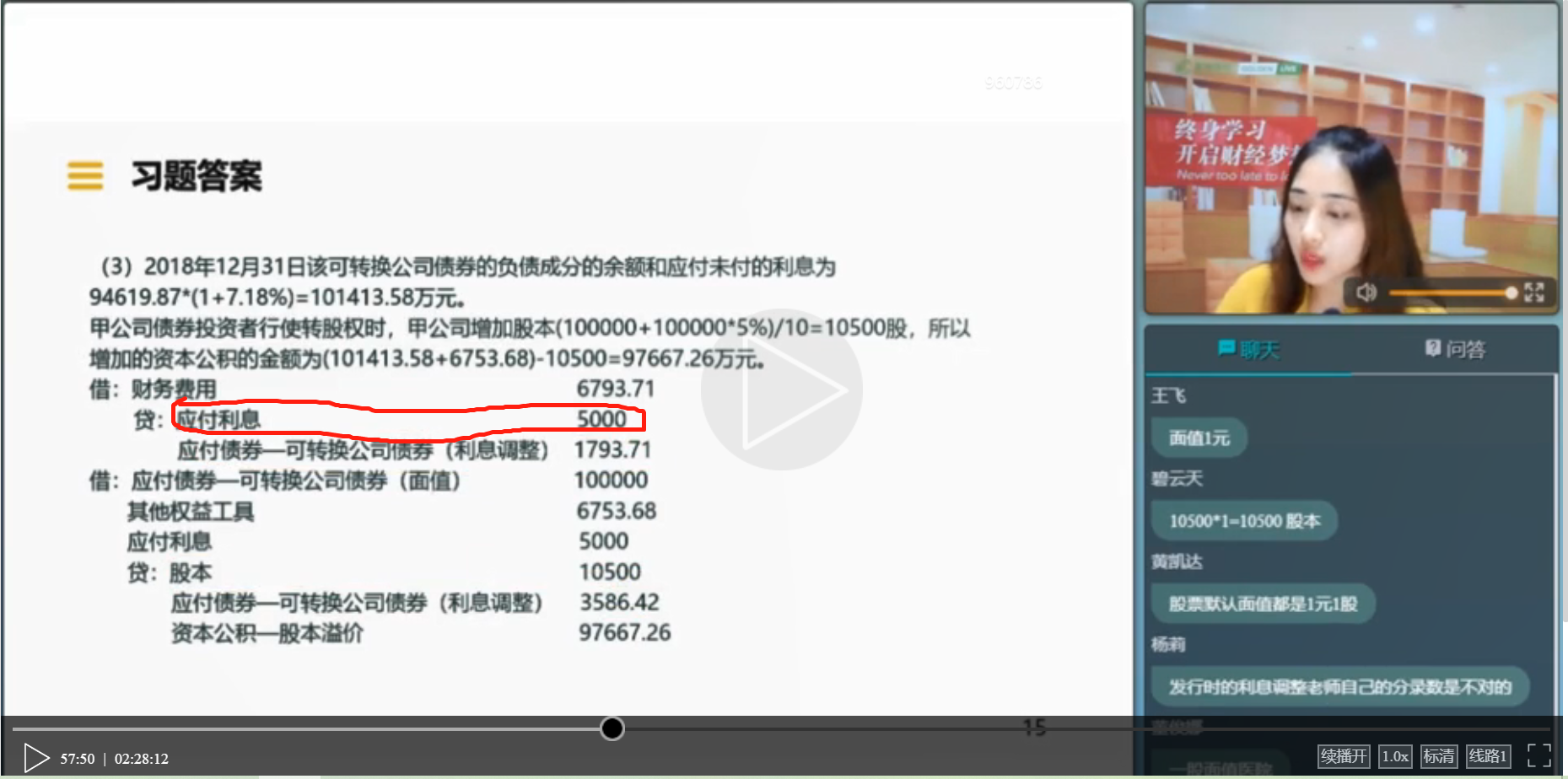 最后转换的时候为什么要处理应付利息?这个5000的应付利息是本年的应付利息还是什么?