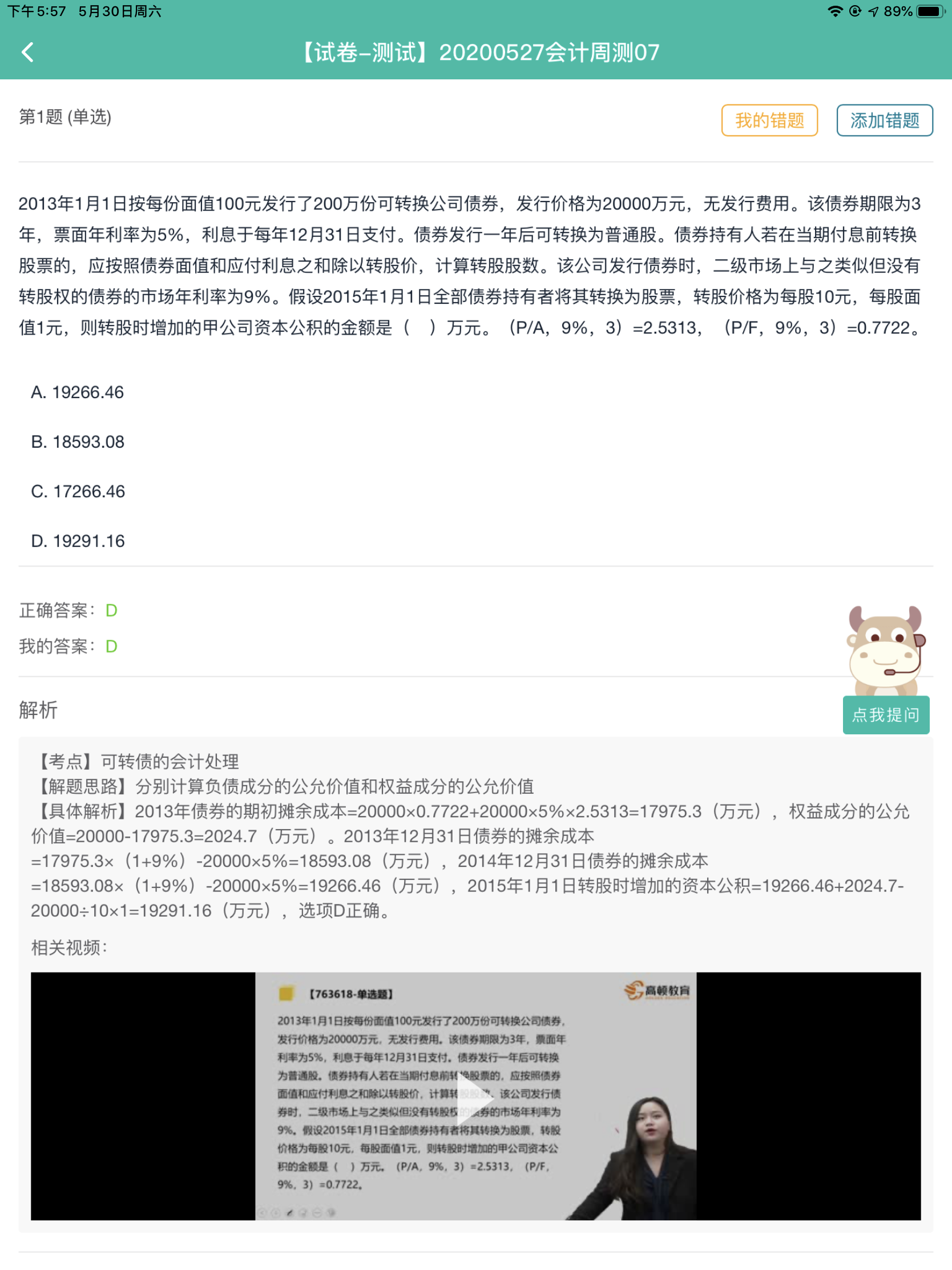 老师,我想问下四维考霸负债综合题第一题,计算转股数时,题目中...