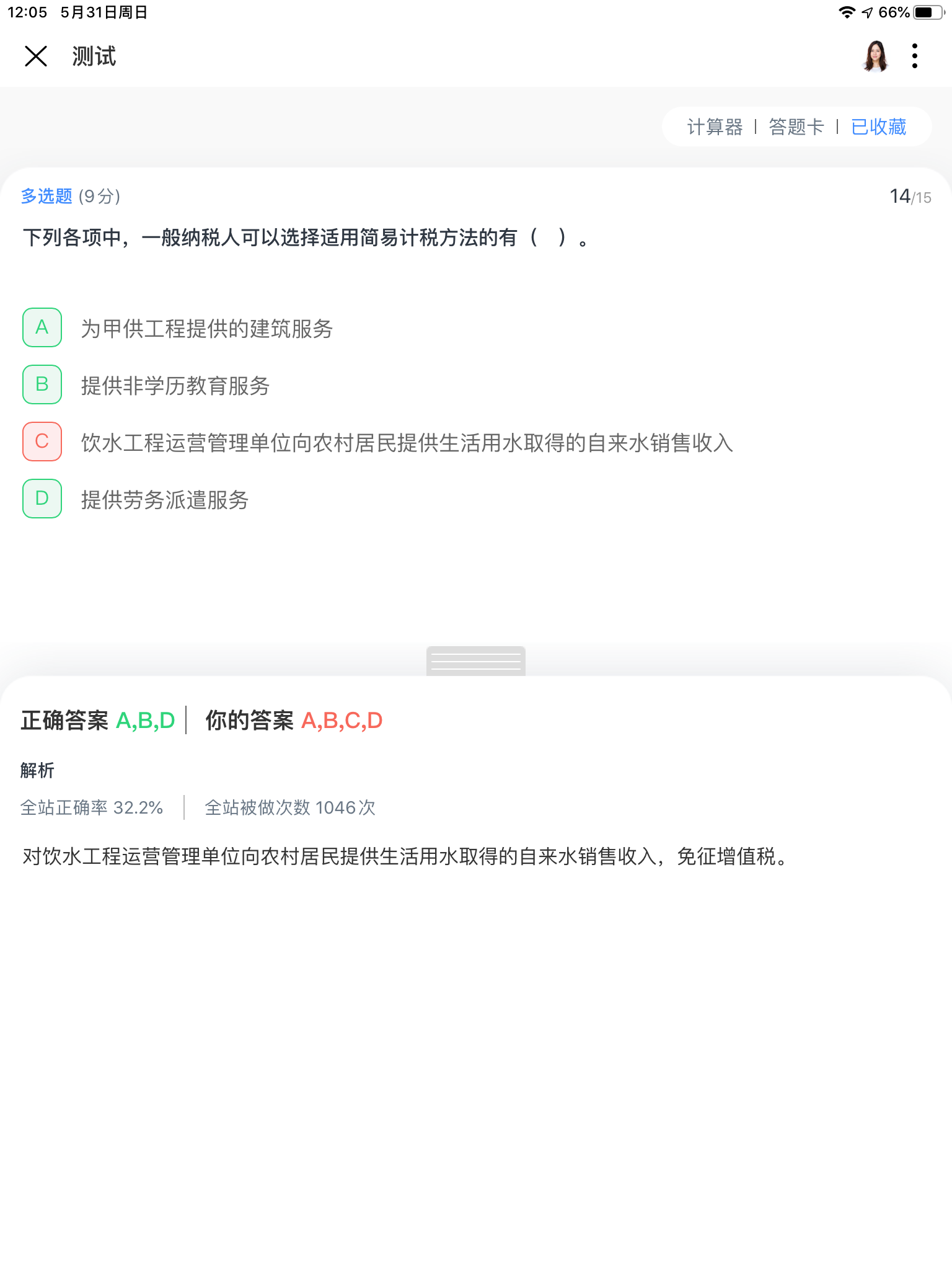 老师您好 想问一下C选项 简易计税里面不有销售自来水么 答案为什么说免征增值税