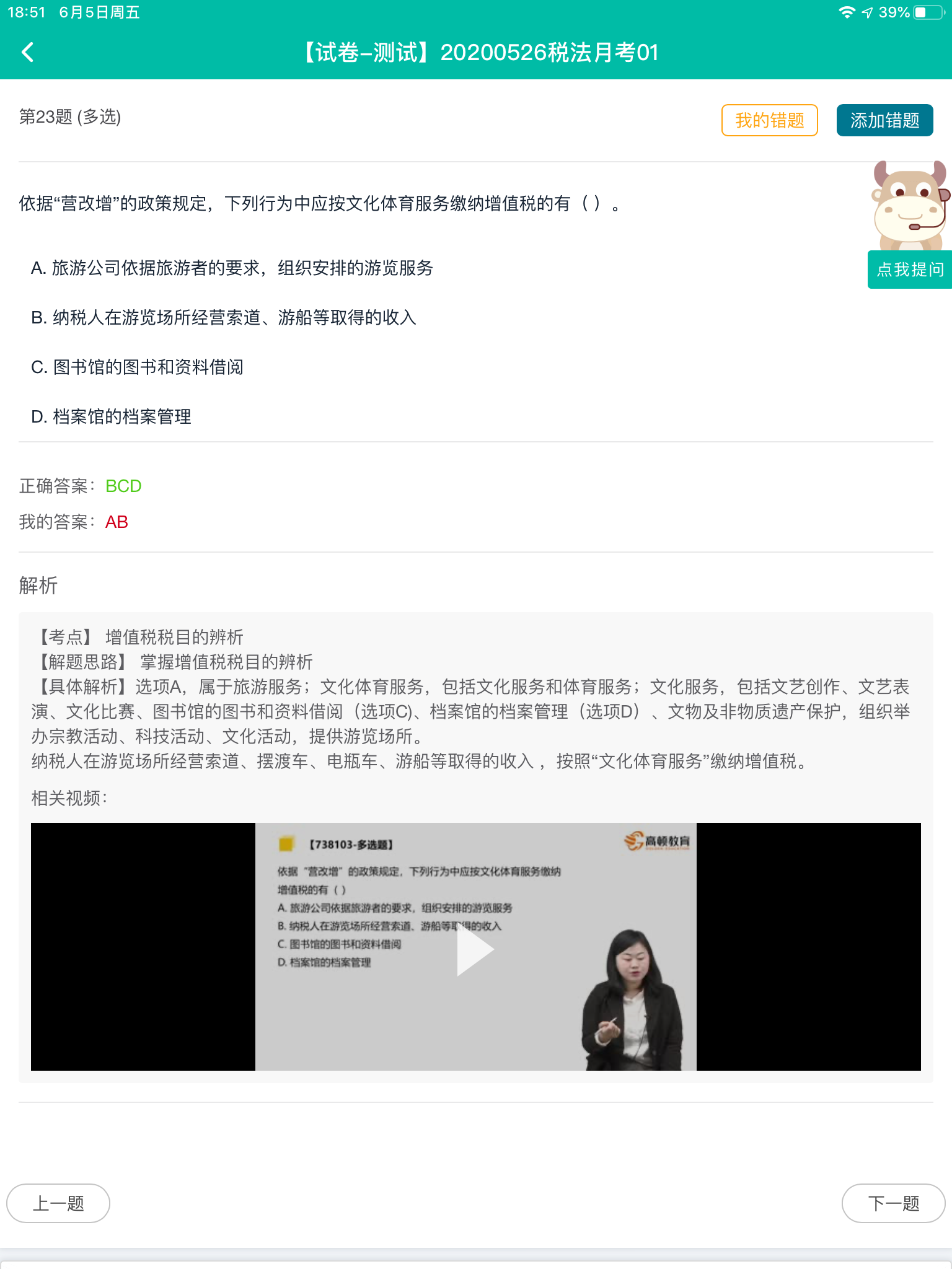 文化体育服务相关的内容在刘佳辉老师增值税讲义的第41页~