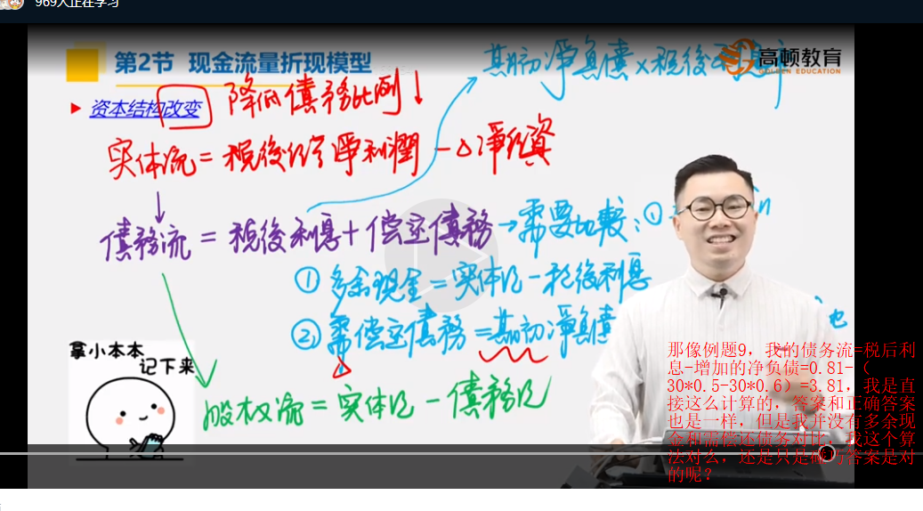 首先纠正一个错误哦:债务现金流=税后利息费用-净负债的增加