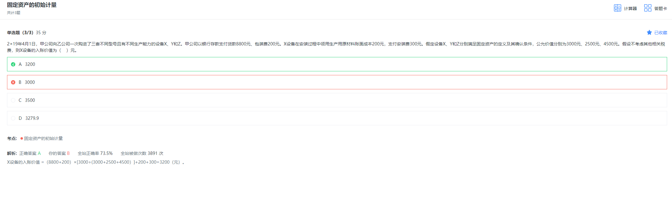 XYZ总的价款是9000,现在题目只让我们求X的入账价值,所以要按比例进行分摊,如果仍有问题,欢迎继续提问,加油哦~