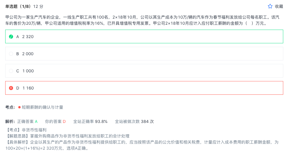老师,我想问一下,这个题假设是20万的车只补贴10万,那应付职工薪酬是不是10万加10万对应的增值税销项,也就是1160。不过,之前卖房子的例题是补贴没有考虑增值税的。