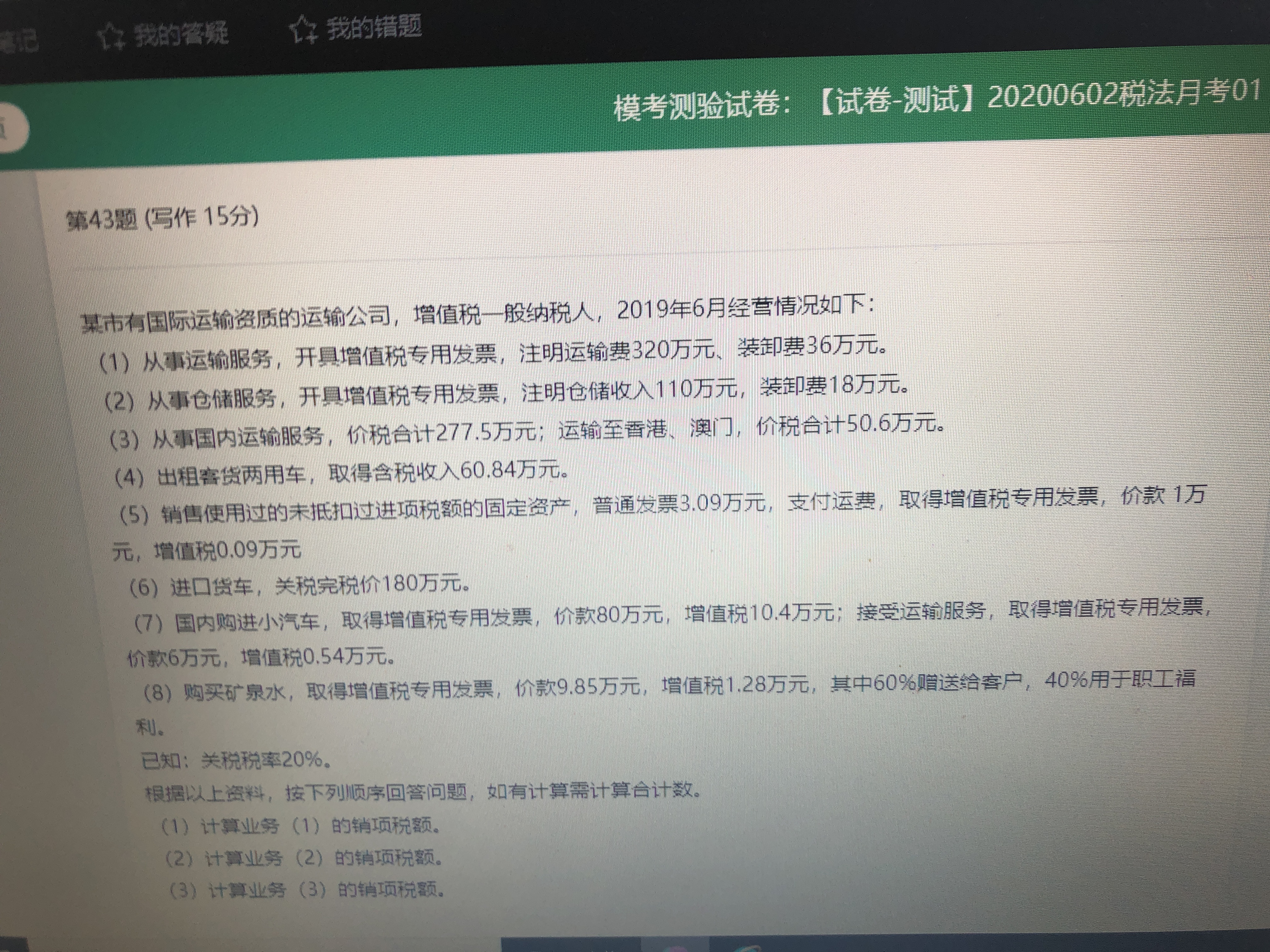 业务5的运费运的是简易计税的固定资产的哦~简易计税的是不能抵扣进项的哈~进而运费也不能抵扣的哦~