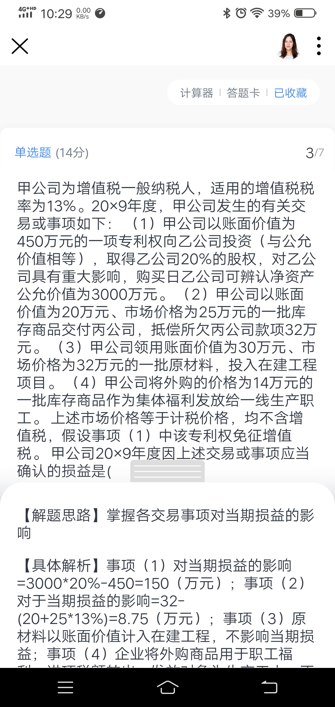 题目没有税那个无形资产的增值税怎么算,所以当成没有增值税