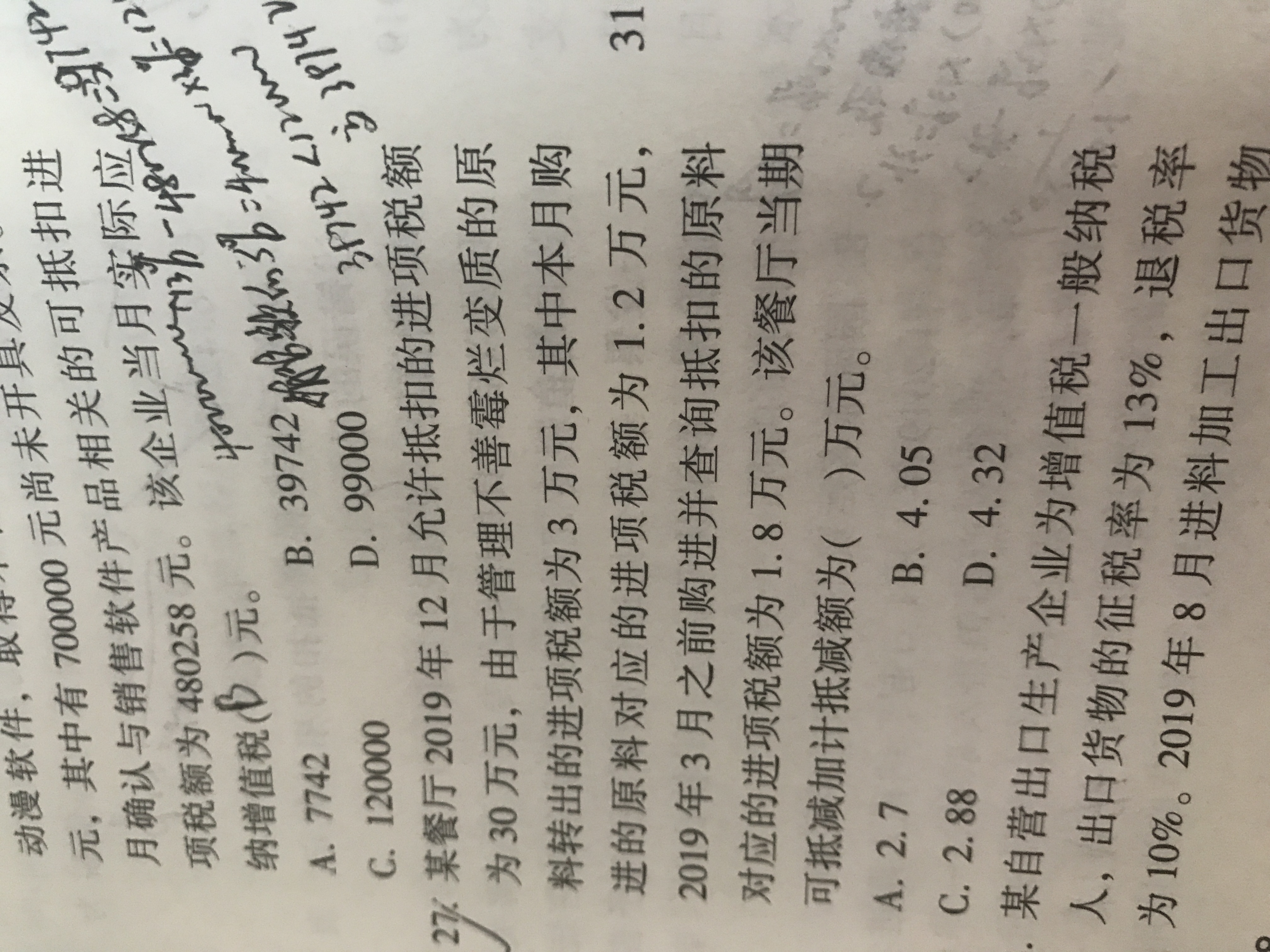 因为这里的原材料已经霉烂变质了对应的进行税额1.2,做了进转出处理,所以要把这部分1.2*15%扣除掉。