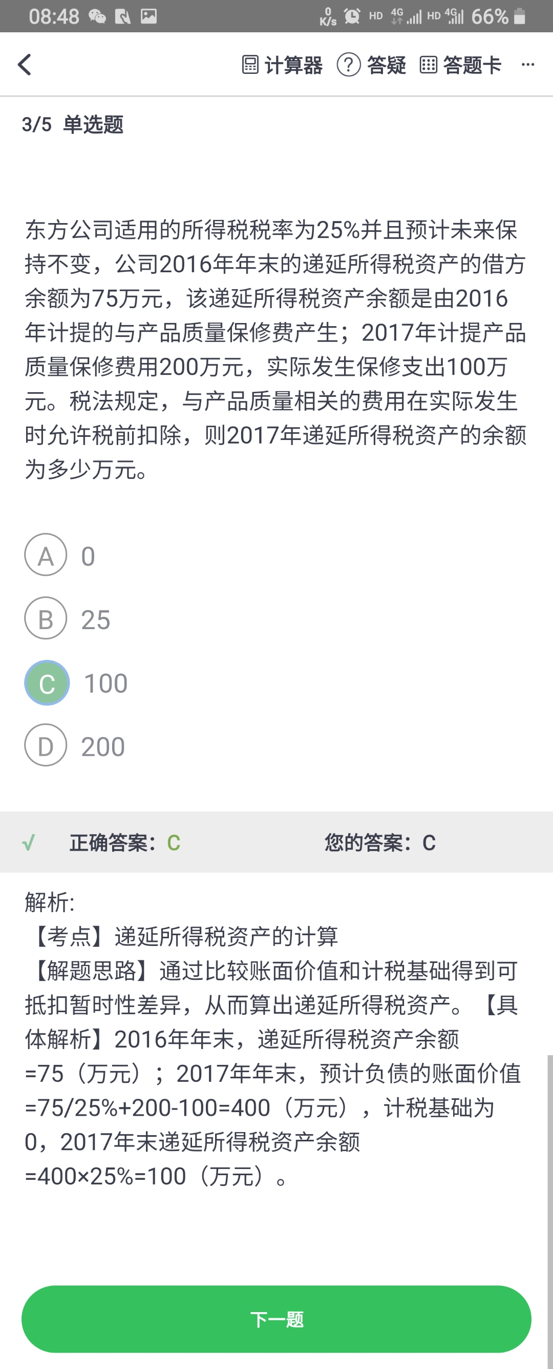 老师你好,这题我是用(200-100)*25%得出25,之后加上75得出的结果也一样,请问这样算的方法对吗