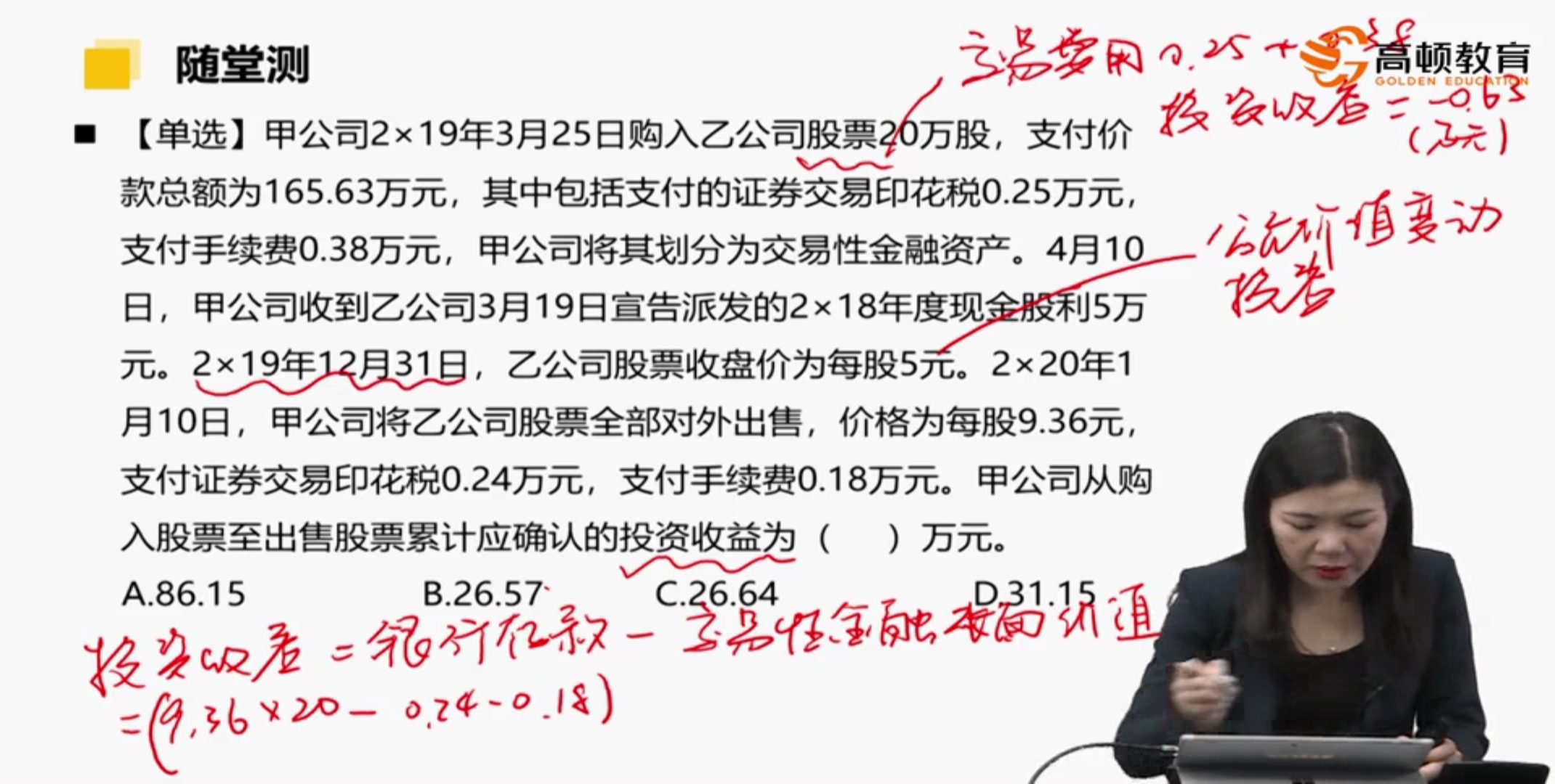 贷:交易性金融资产——成本 165.63-0.25-0.38-5=160万元