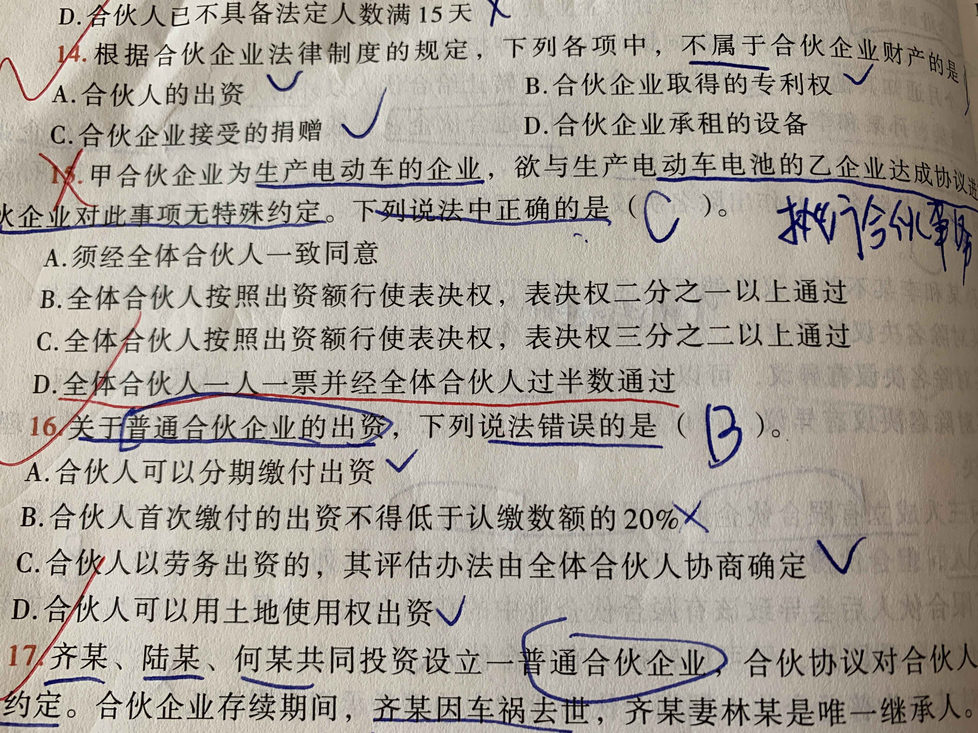 老师第15题,我理解的是执行合伙事务不明所有要2/3以上人同意,但是答案是错的不太理解,