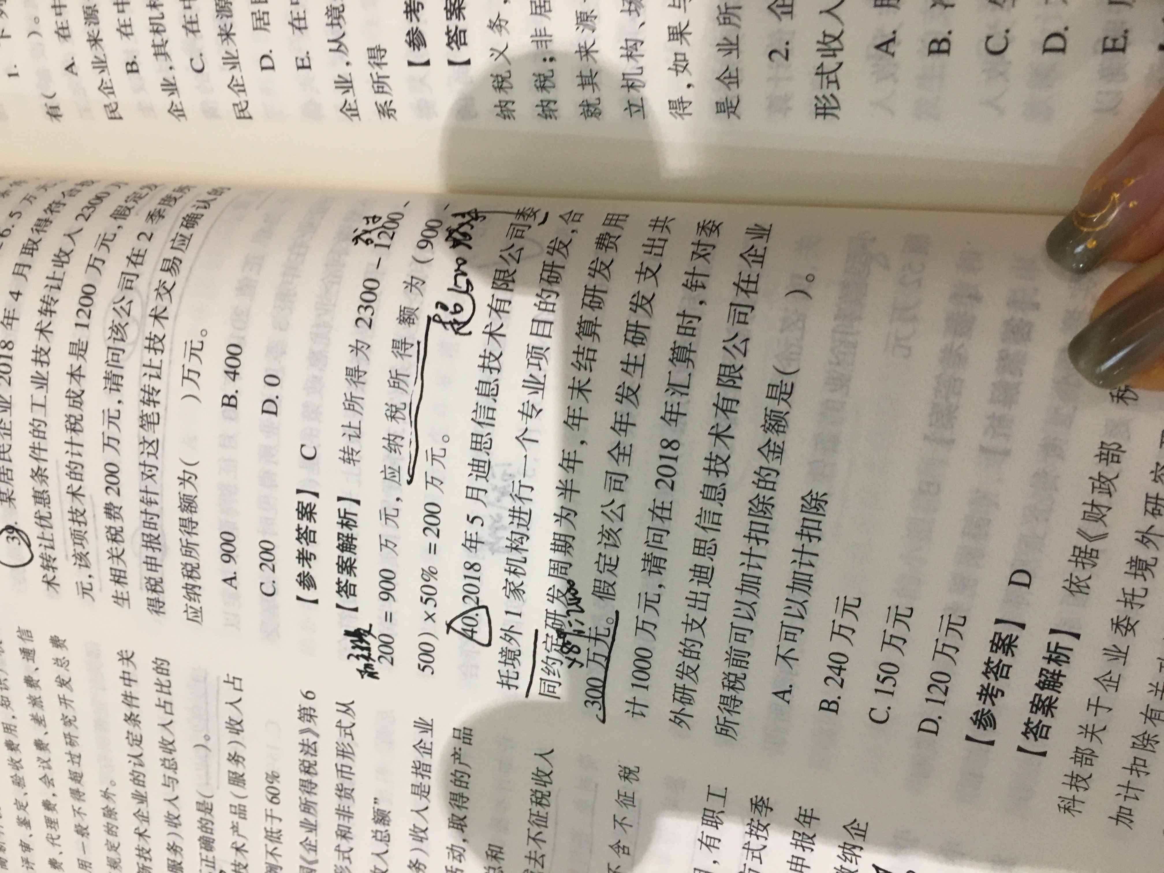 按照最新的标准75%做不出正确答案,你的理解是没错的,是按照240作为境外研发费用加计扣除的标准,D选项120可能是根据以前政策50%计算出的加计扣除额,这个题有点问题,因为我们这边没有题目和答案,同学可以看一下他们提供的参考答案,如果有问题,可以与我们继续沟通~~