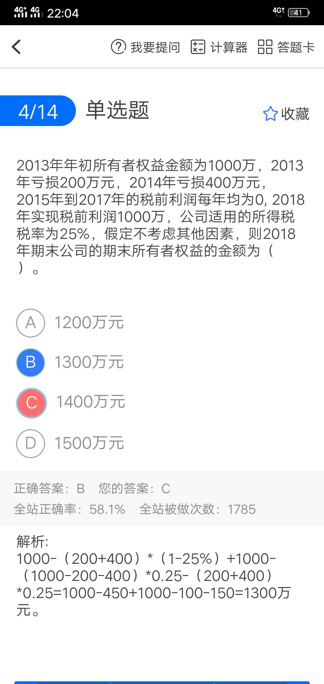 老师,您好,单选第5题答案中800-(500-300)没懂...