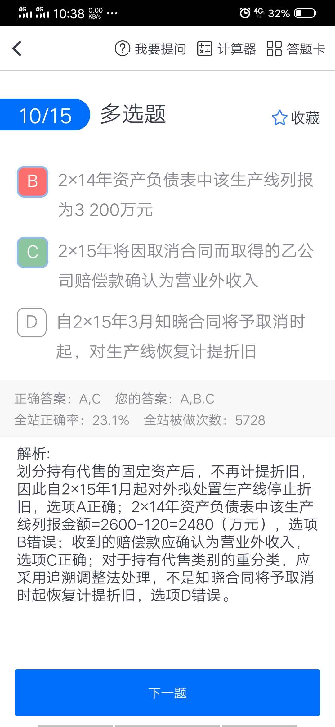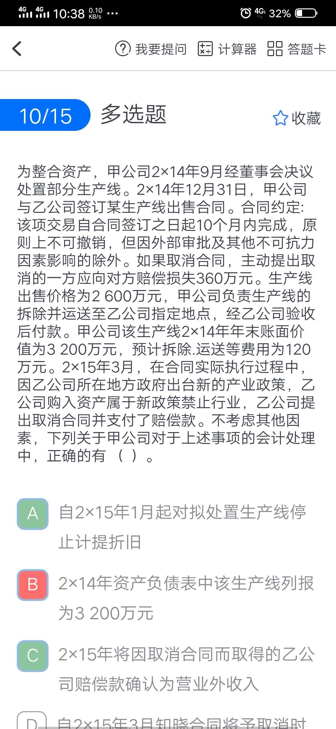 在产负债表日,持有待售的非流动资产,按照账面价值与公允价值减去费用后的净额孰低计量。本题中账面价值为3200,公允价值减去费用为2600-120=2480所以应当按照2480作为该生产线列报的金额。