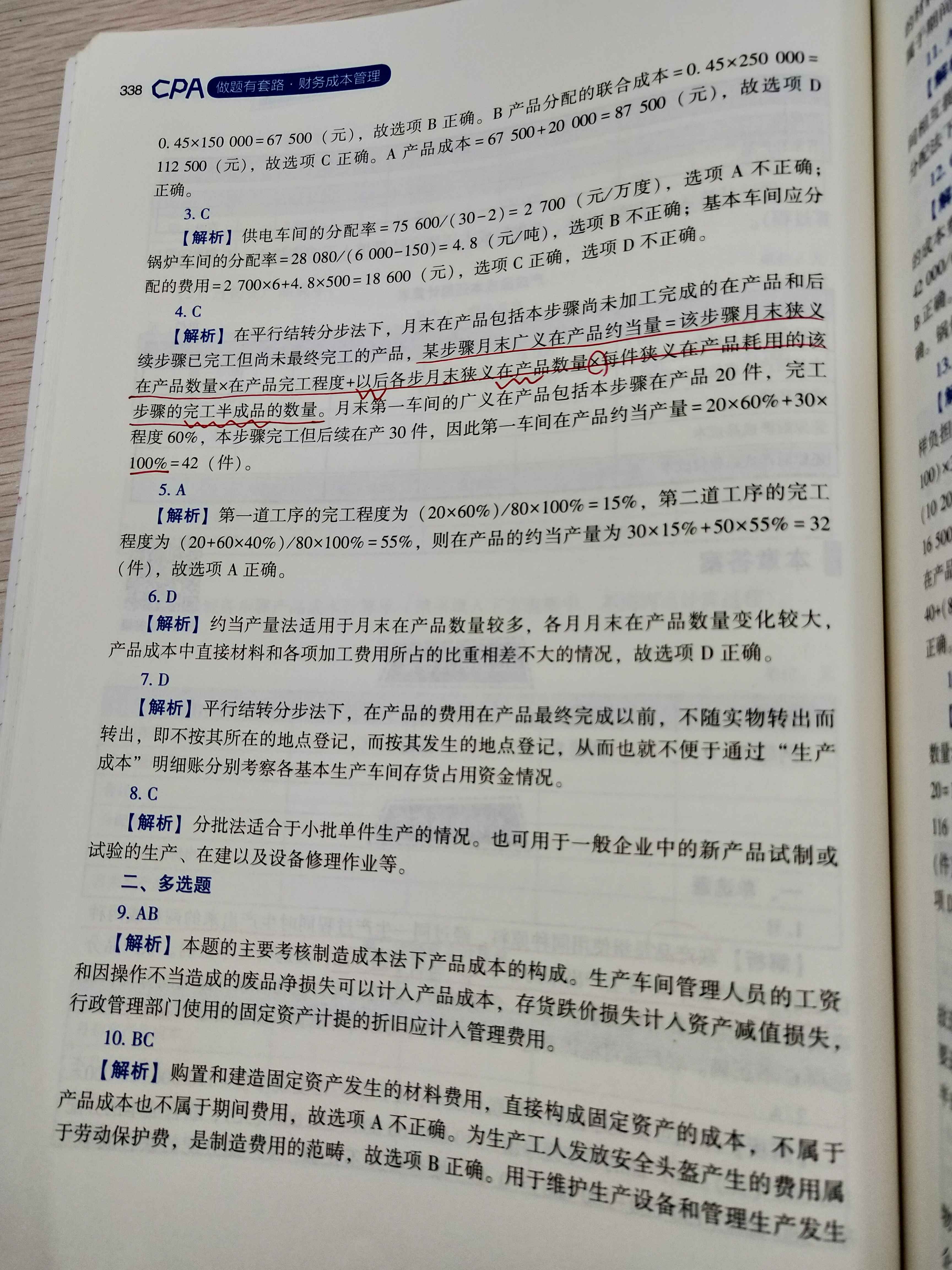 老师,我有一个问题: 图一第4题,图二的解析说:……以后每步月末狭义在产品数量*每件狭义在产品耗用的该步骤的完工半产品的数量。 为什么两个数量是相乘的?答案是30*100%,我不明白。