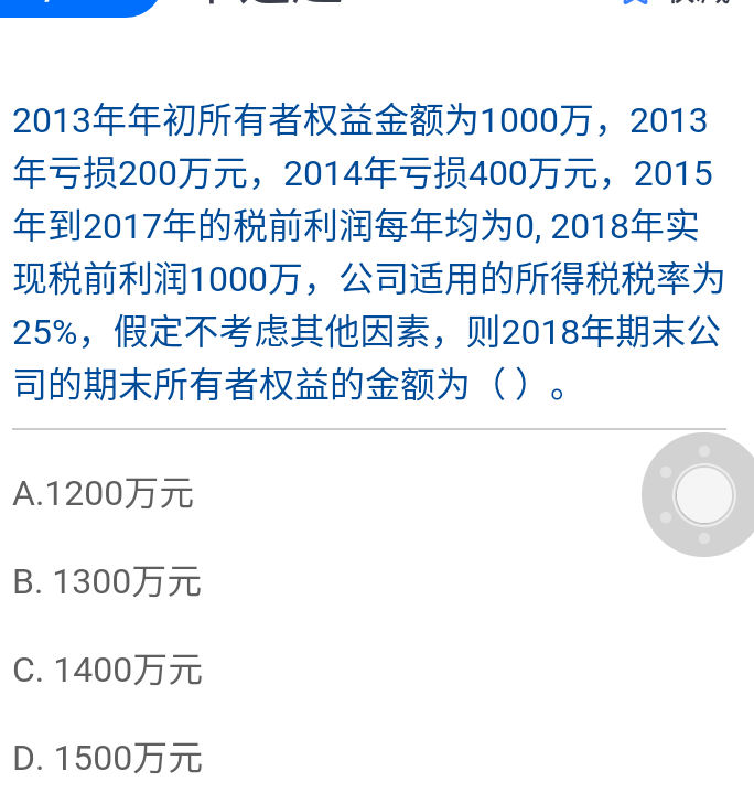 解析的内容比较复杂,老师跟你讲一种简单的算法,1000+(1000-400-200)*(1-25%)=1300。