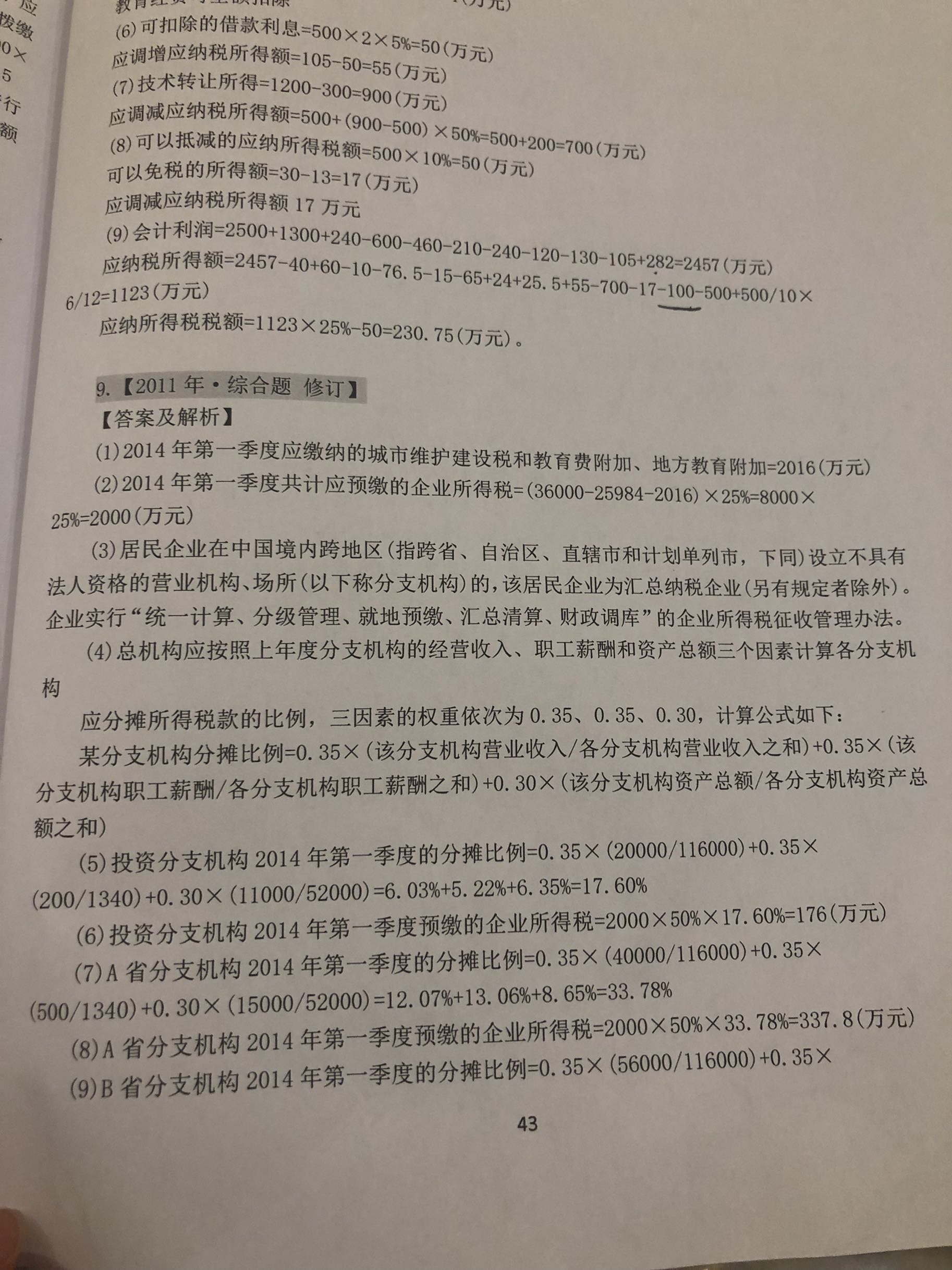 大题9,在计算2014年第一季度分摊比例的时候,为啥都用的是2013年对应的表中数据,为啥不用2014年对应的表中数据呢?