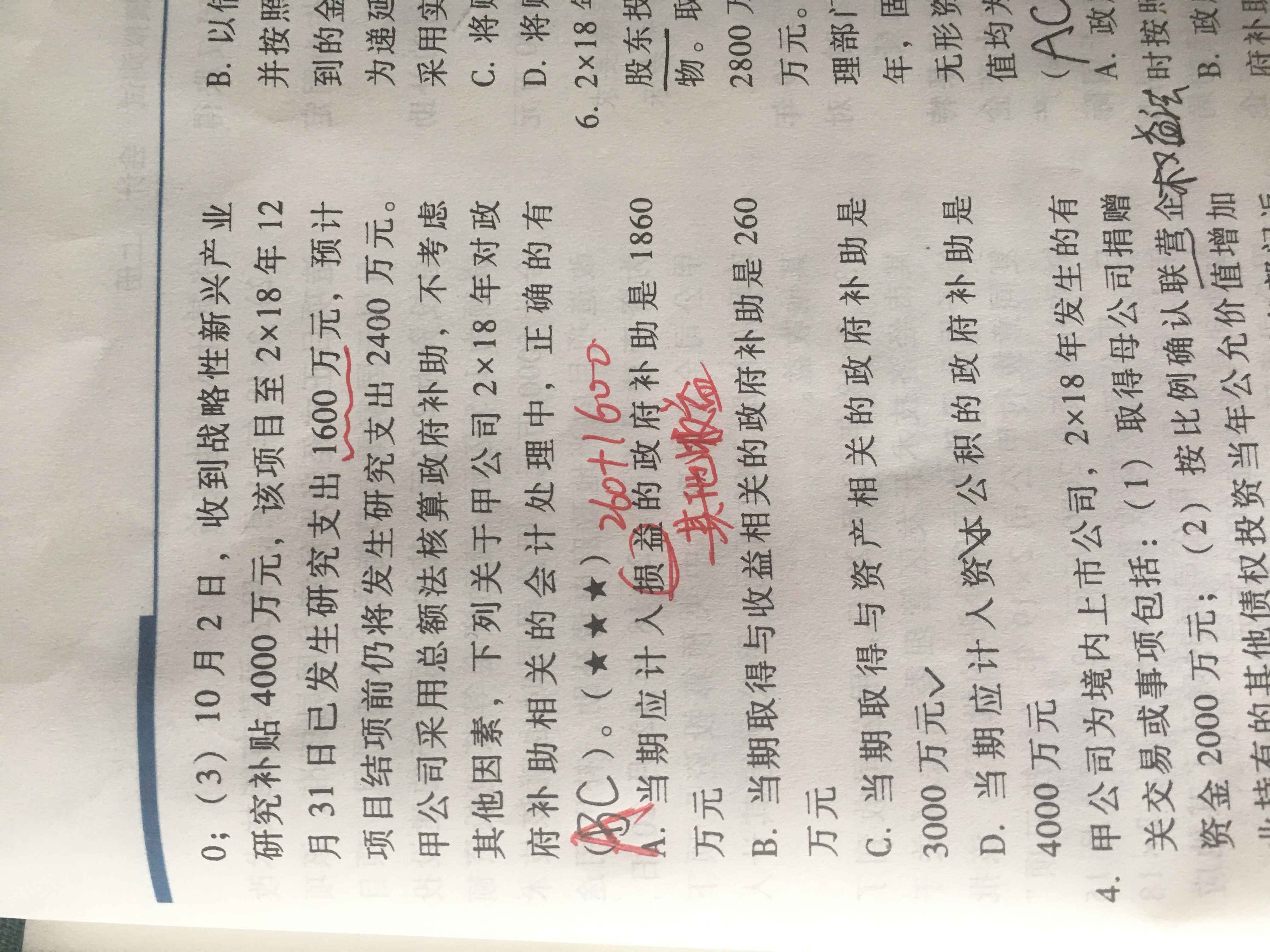 3题的第1项目的政府补助是不是与收益相关的,补助过去呢?是的同学,为了补贴以前发生的费用。