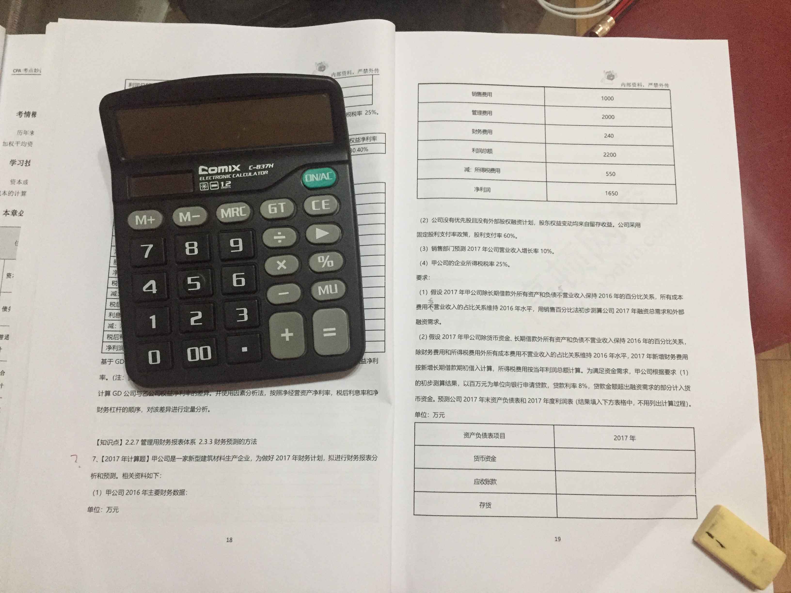 分章做真题第二章,第7个计算题,已知条件未给全吧。没有资产负债表数据
