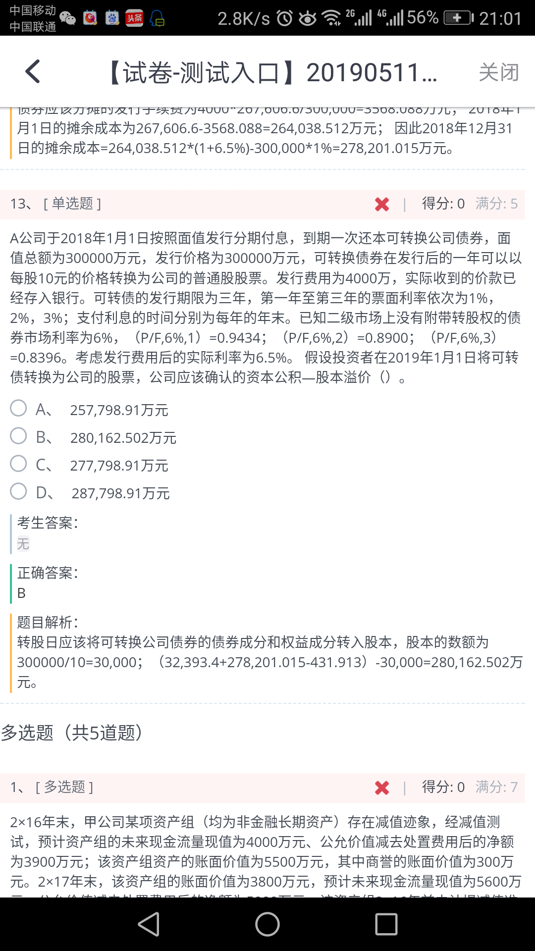 A为什么错?可转换债券不是只是要不要债,要不就转未股,不可能...