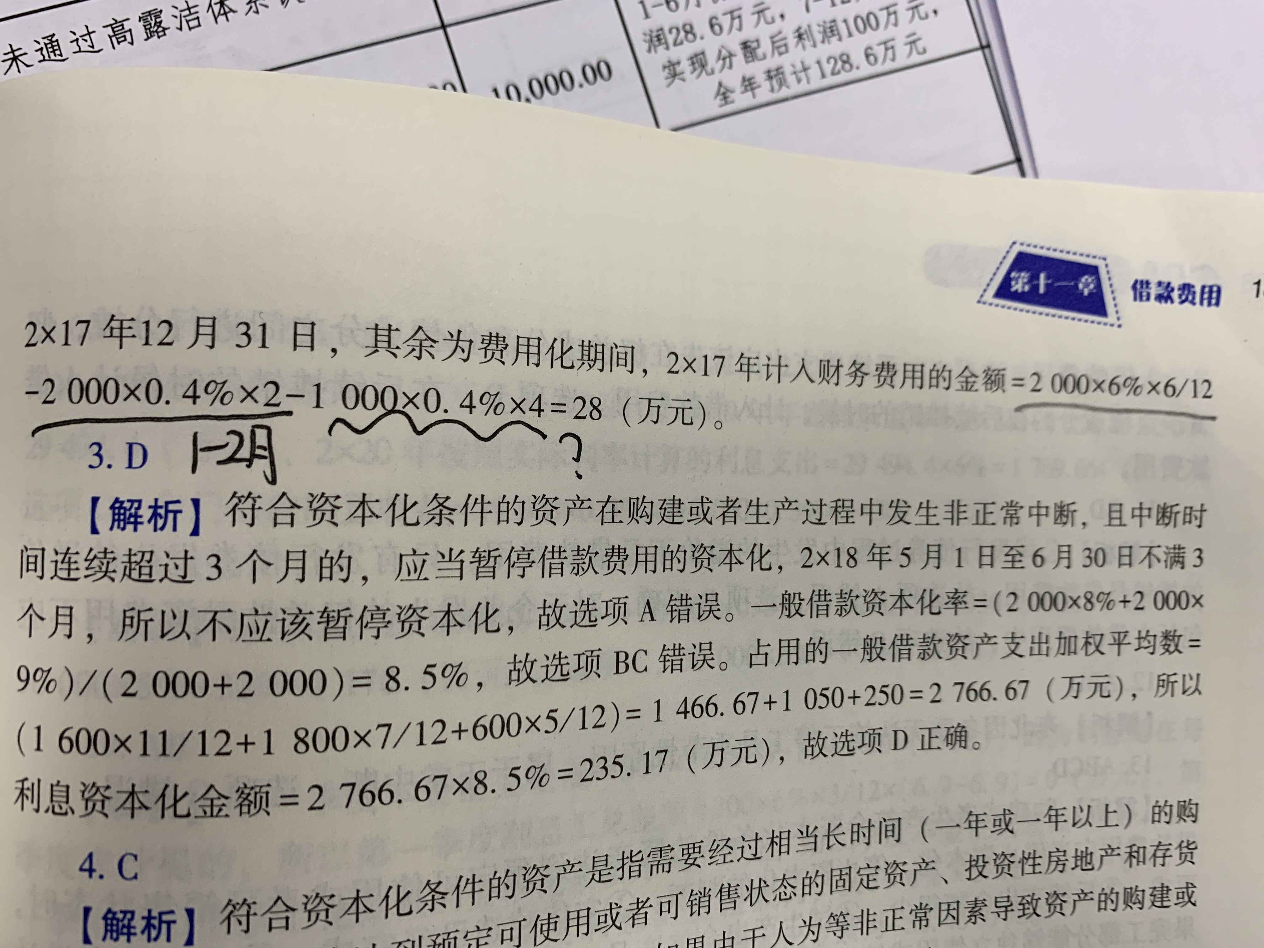4是6月1日—10月1日之前 也就是4个月(6,7,8,9月)暂停资本化的期间~