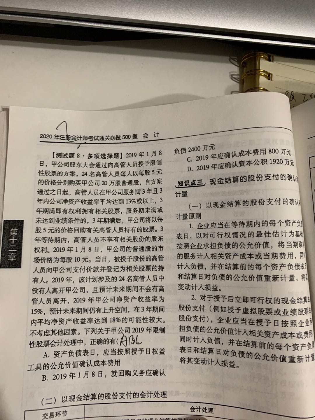 这到题目考查限制性股票的授予,
