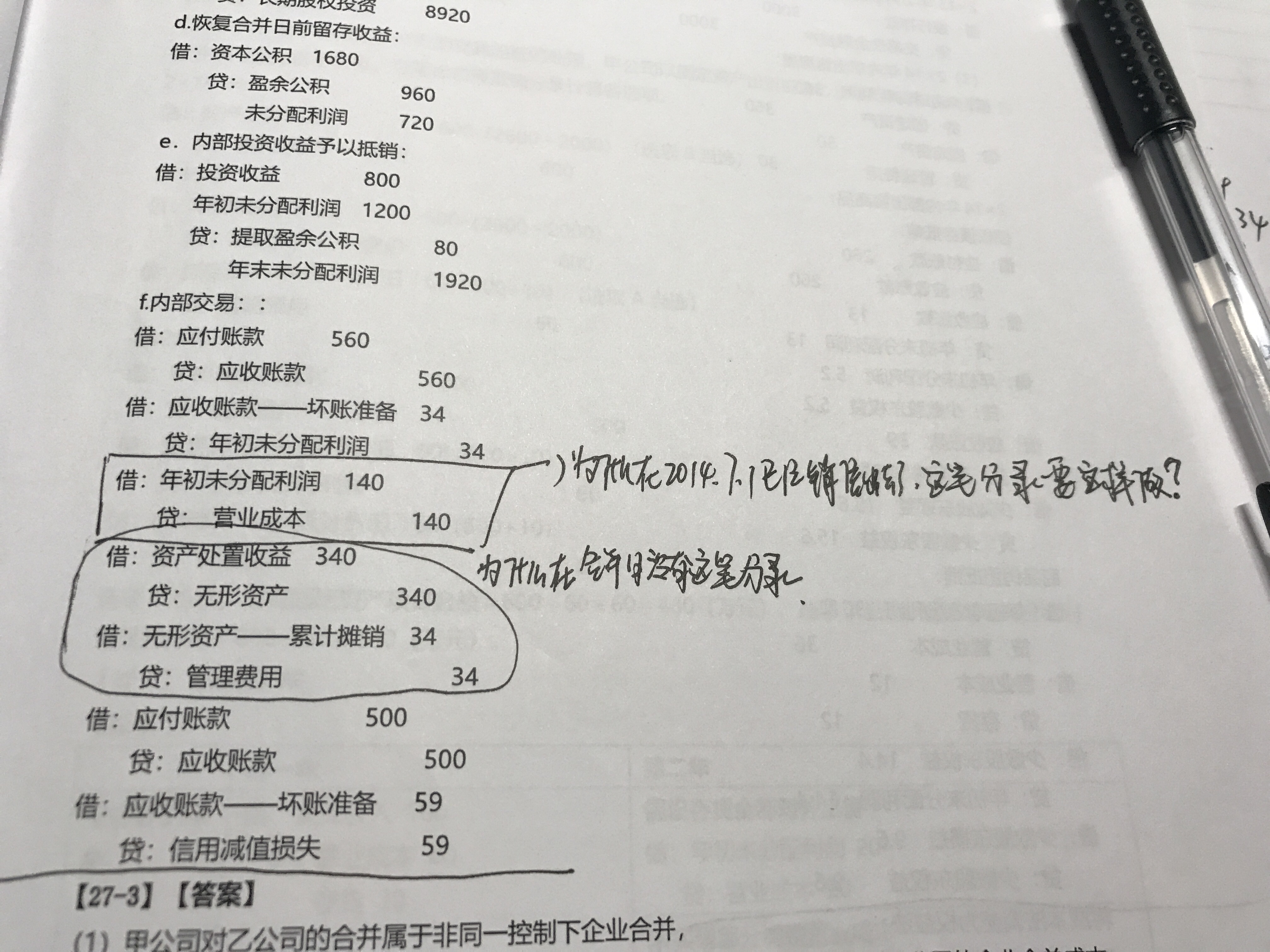 3:内部交易无形资产,卖方个报上形成资产处置损益,买方增加了无形资产的价值,合报中不认可,要抵消,因为虚增了无形资产的价值,所以摊销额肯定也大了,所以要把摊销额也抵消,个报中摊销计入累计摊销,合报中直接用报表项目,所以用无形资产代替。
