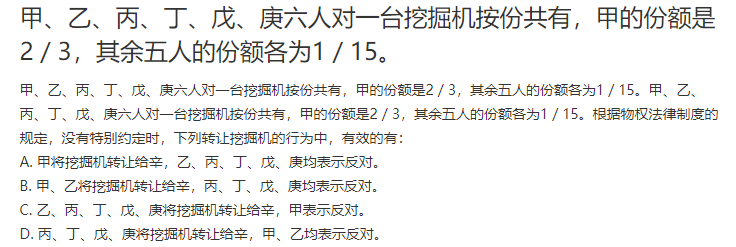 甲2/3,其余5个相加5/15=1/3,a成立;甲乙11/15,剩余4人=4/15,所以b也成立,老师这题是这样解释吗