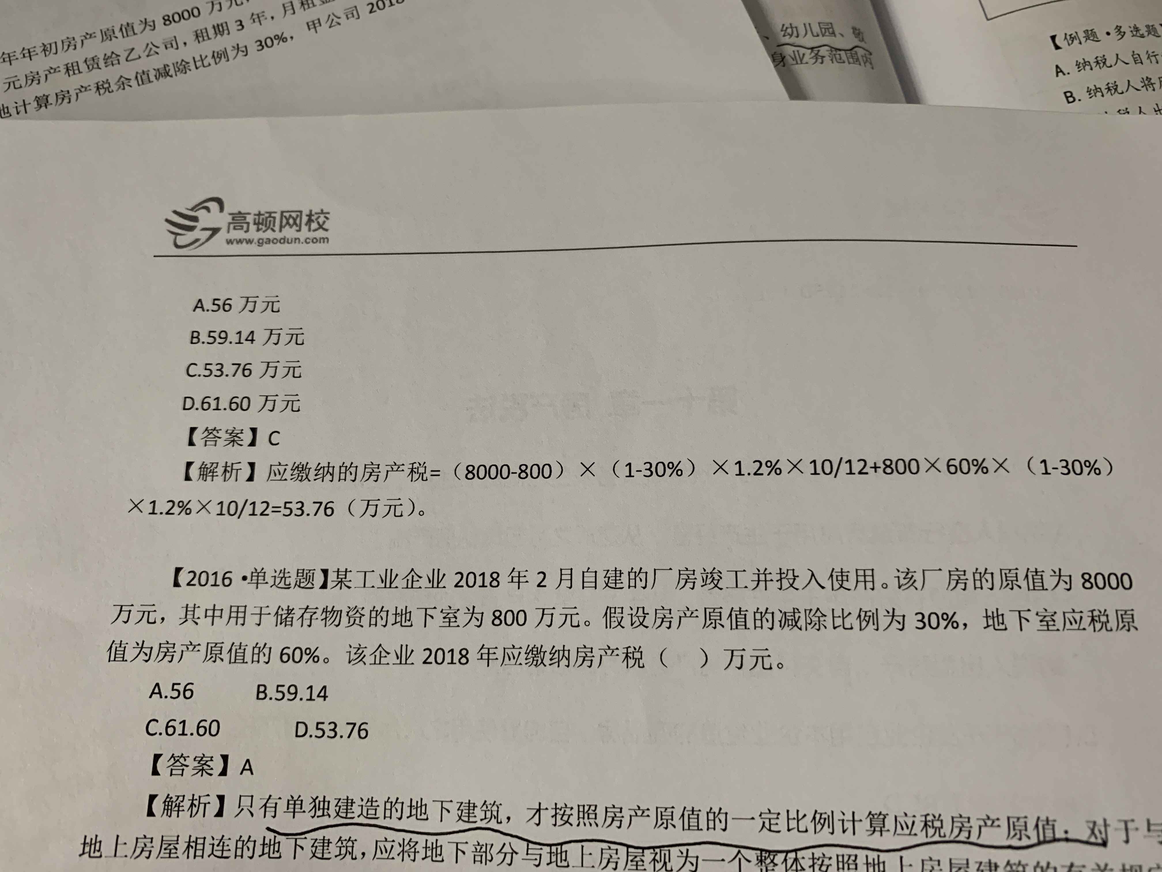 这种题要读题准确一点,一个是说独立地下室,还有另一个没说是独立地下室,所以一个是单独按余值算,一个是和地上建筑物一起算。
