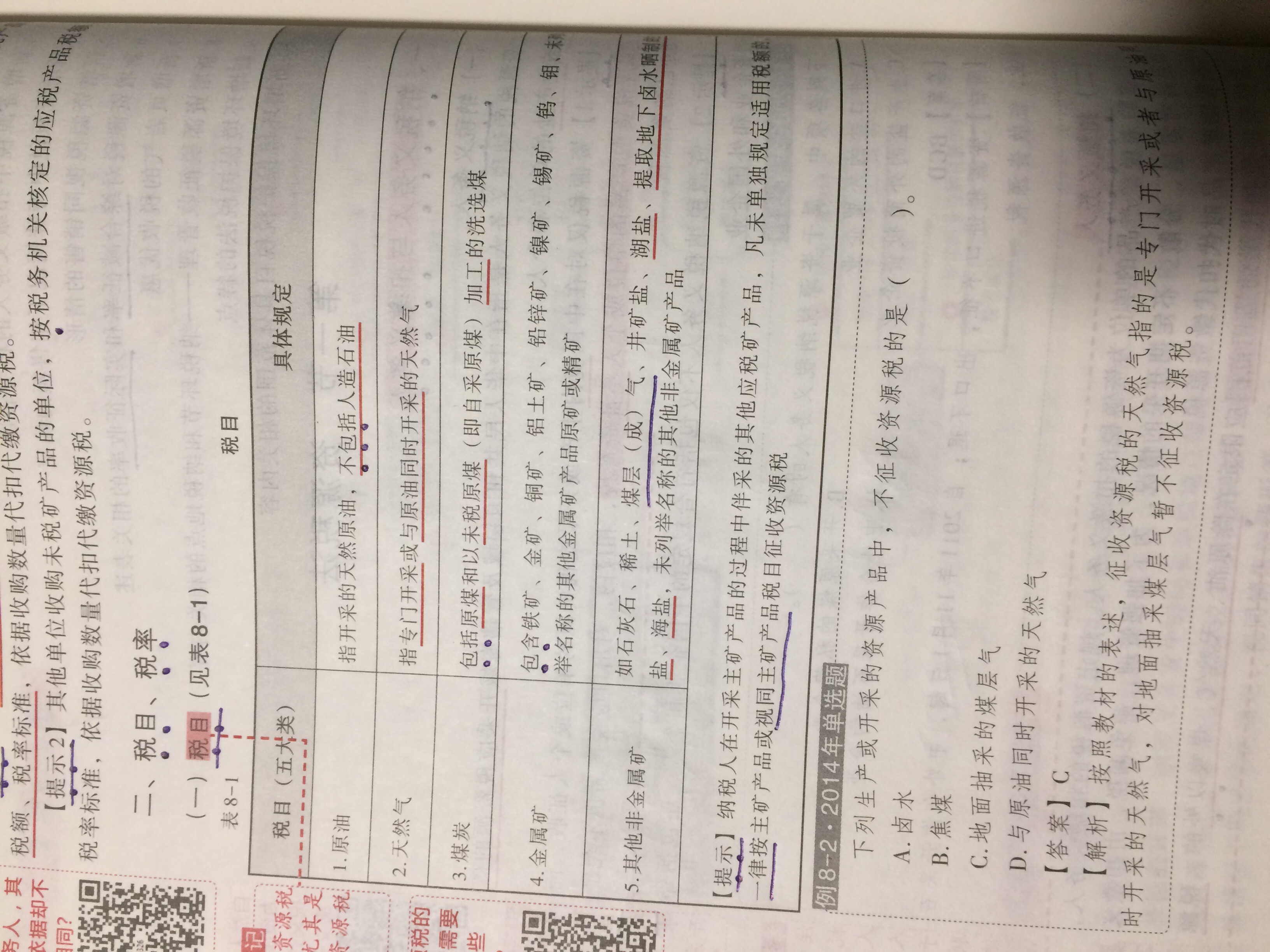 例8-2中给出的答案是C,但8-1税目表中第五项“其他非金属矿”中有煤层气这一子税目,答案解析似乎不正确。个人感觉选B,“煤炭”税目中没有焦煤这一子目