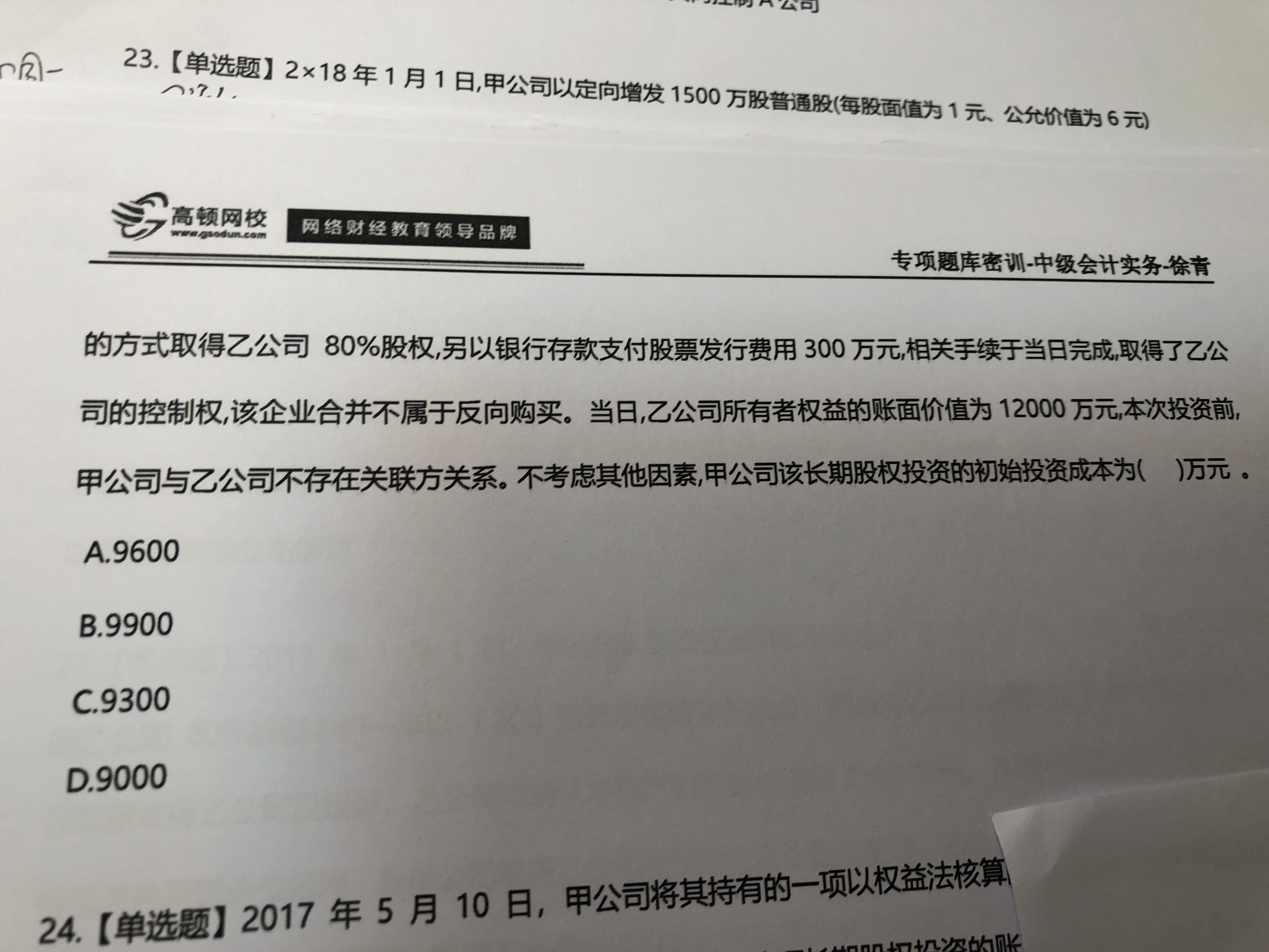本题考的是非同控,初始投资成本=支付对价的公允价,不必考虑比例。