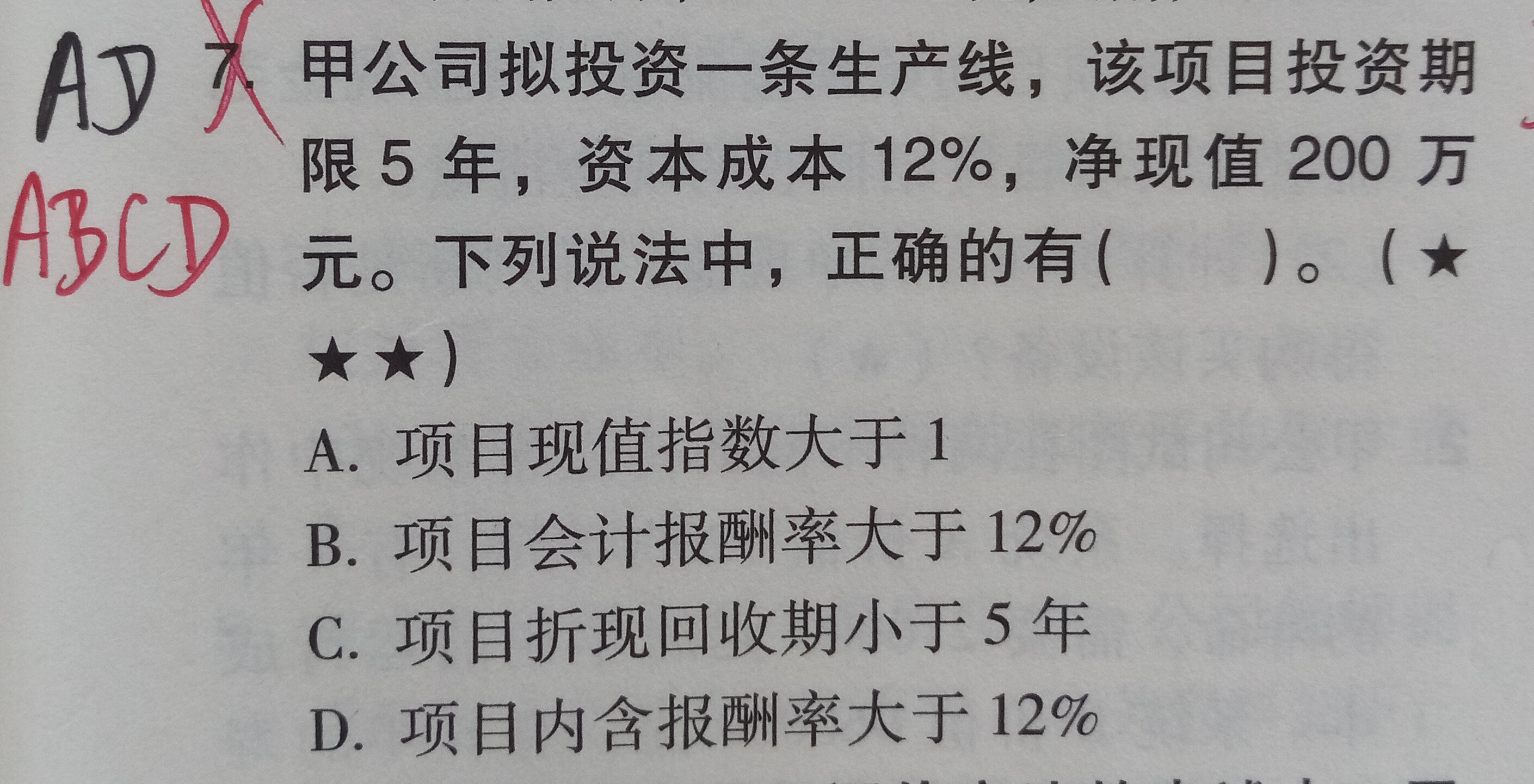 T同学B选项是错误的,不能选择,因为会计报酬率没有考虑时间价值,所以无法直接判断的。