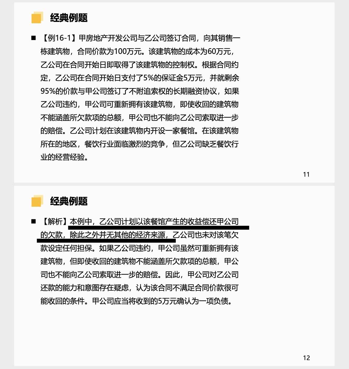没明确说出来,乙就95%的剩余价款和甲签订融资协议,俗称贷款,贷款要还钱的,用什么还,既然乙要开餐馆,只能用餐馆赚的钱还(除此之外题目中没有别的现金流)。考试要答出因此后面的语言(最好),黑线后面的表述尽量答出这个意思即可。