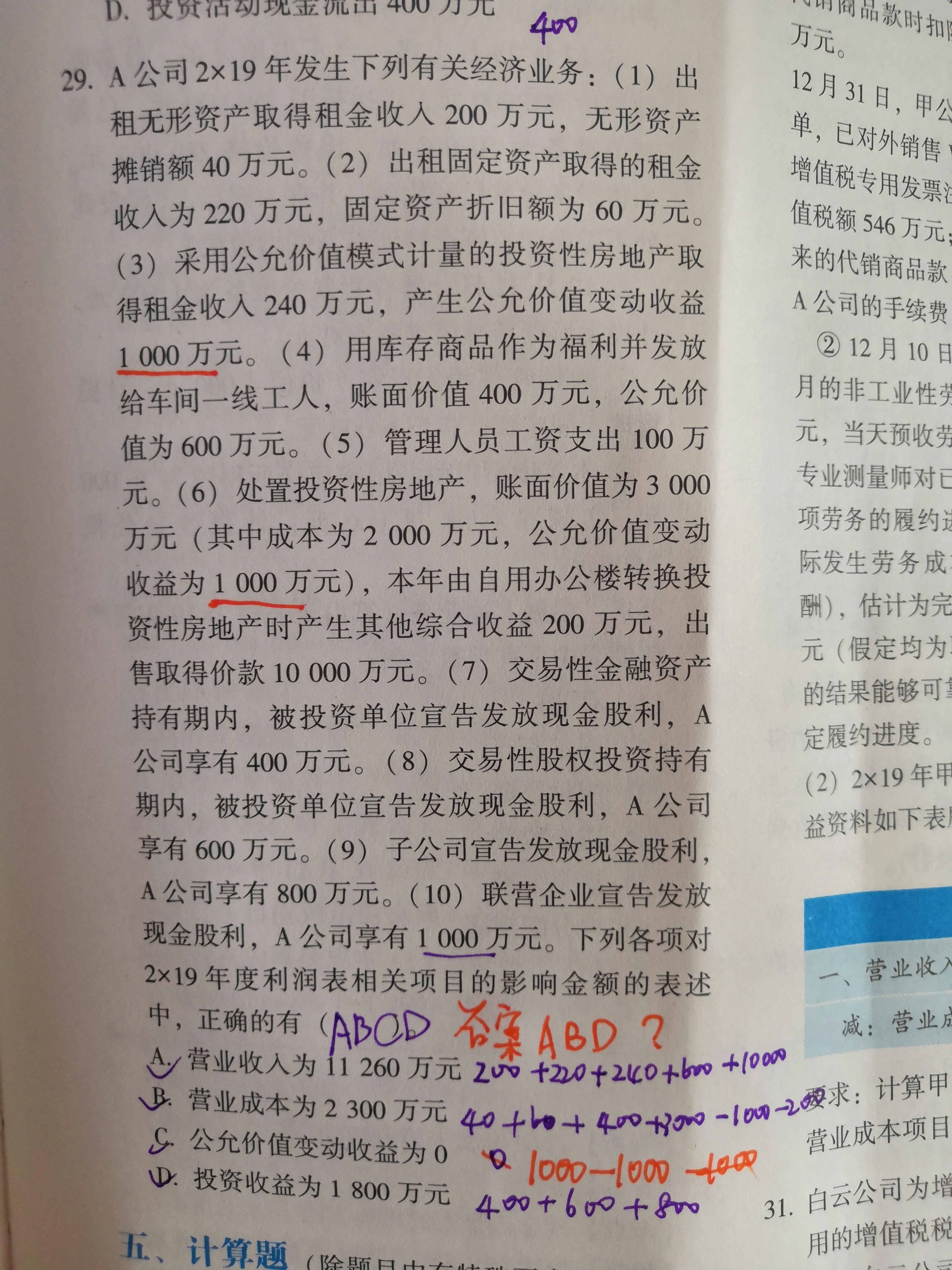 这里是(6)指的是1月1日处置的,但是大蓝本上是没有说1月1日处置,也就是当成当年公允价值增加1000,然后当年处置