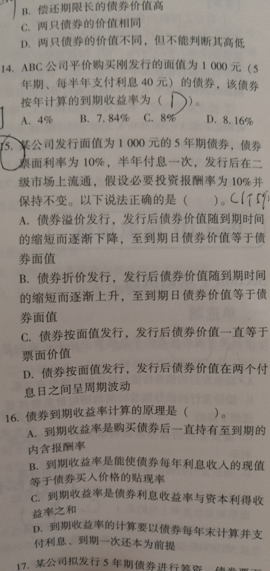 是每半年付息的,周期付息的,d对了